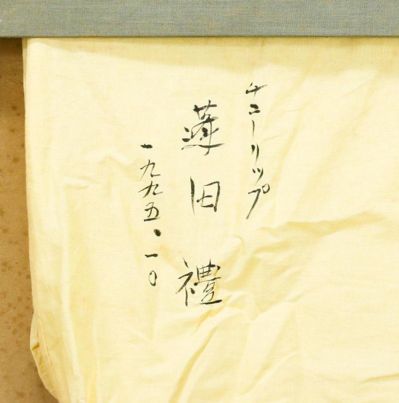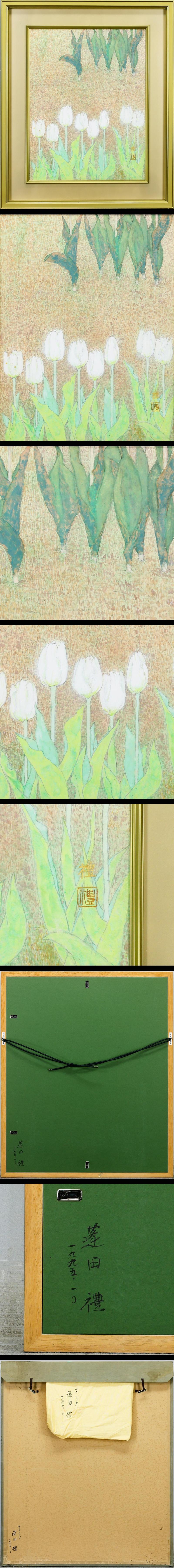 【真作】【WISH】蓬田禮 日本画 10号 1995年作 金落款 春の風に咲く白いチューリップ #26012400 收藏