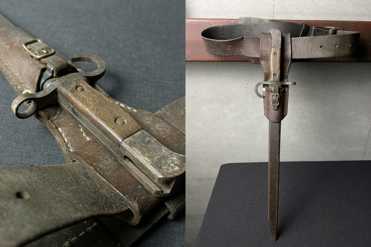 当時物 三十年式銃剣 鞘 ベルト 柄 コレクション◇ミリタリー/軍刀/旧日本軍/陸軍/軍装/武具/戦争資料/歴史/満州/支那/鉄製/革ケース 收藏