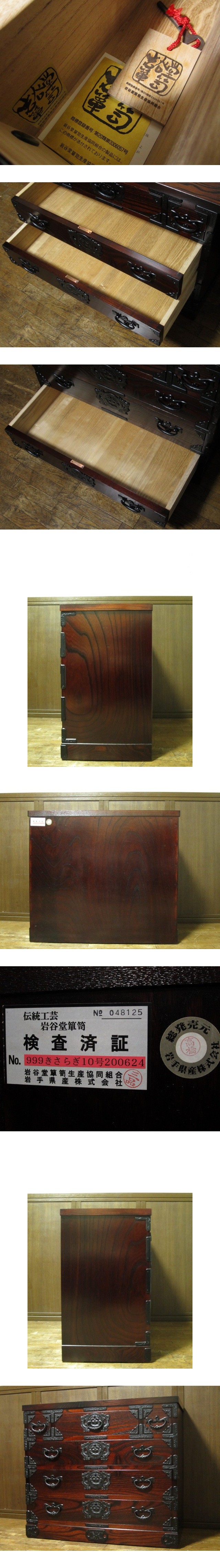 美品 伝統工芸 欅材 拭き漆塗 №999きさらぎ10号 3段 6杯抽斗 民芸 岩谷堂箪笥 鍵付き/衣装箪笥/時代箪笥/整理箪笥/抽斗/和家具 收藏