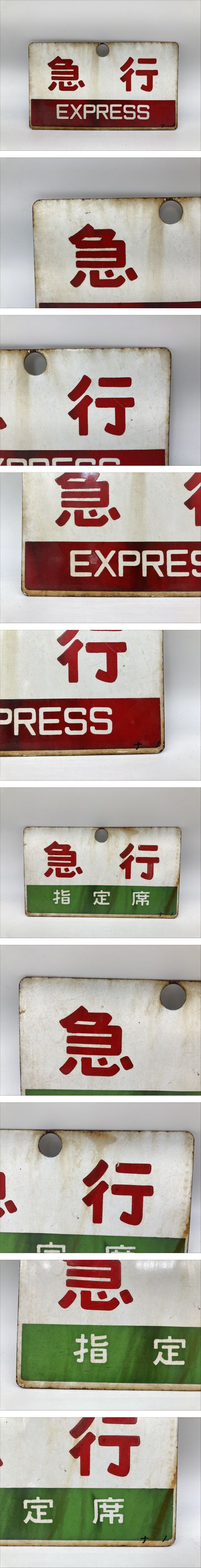 | 商品説明 | 京都6★ 鉄道看板 急行 指定席 EXPRESS 両面 24.3㎝×14.3㎝ 保管品となりますので、経年による汚れや錆、キズなどがございます。 ■サイズ 約24.3㎝×14.3㎝