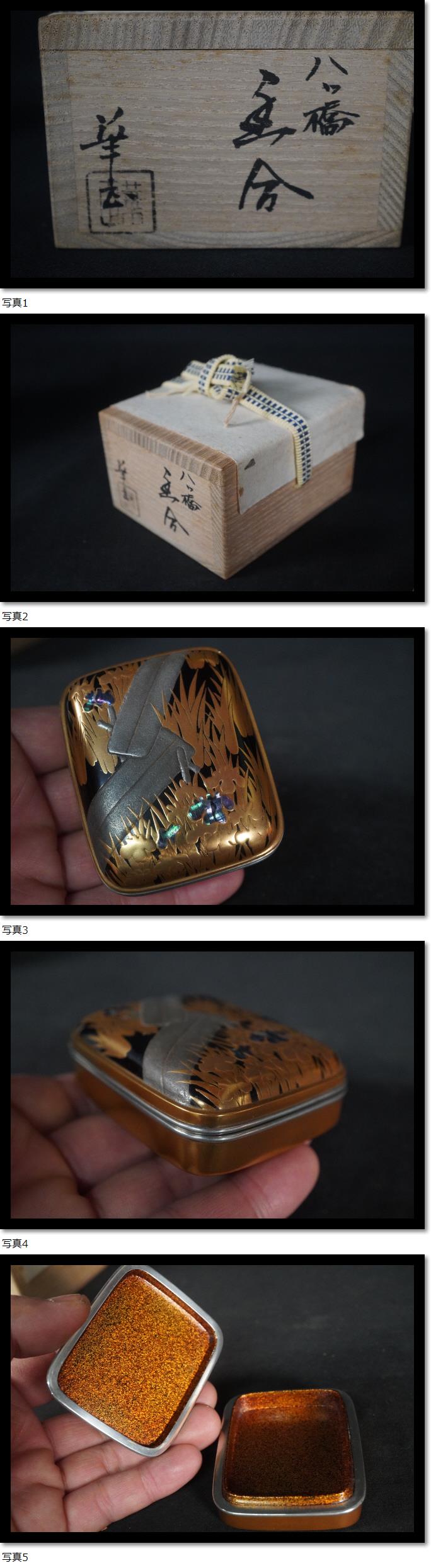 | 茶道具 香道具 在銘 漆器 蒔絵 香合 銀縁 ※ 尾形光琳の名作 八ツ橋 燕子花(かきつばた)図 |