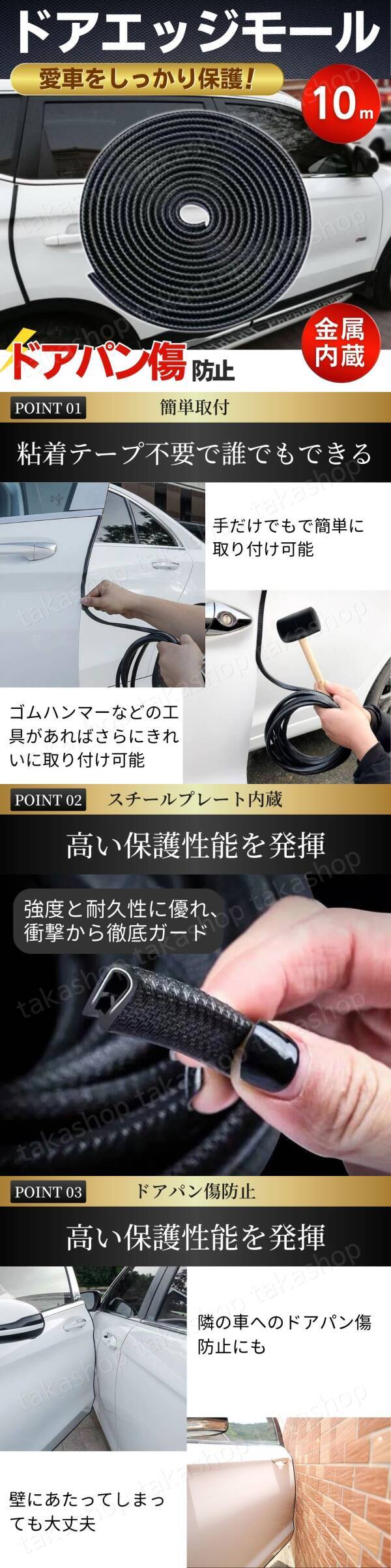 ドアモール ドアガード ドアエッジ プロテクター 傷防止 保護 キズ 開閉 U型 ドレスアップ 外装モール 車外装品 金属内蔵 ブラック 黒 10m 收藏