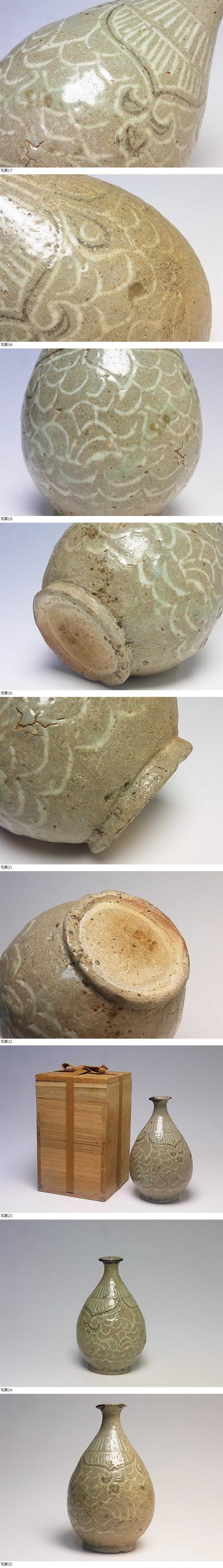 『李朝三島徳利 粉青白黒象嵌瓔珞文瓶 箱付 李朝時代』の出品です。