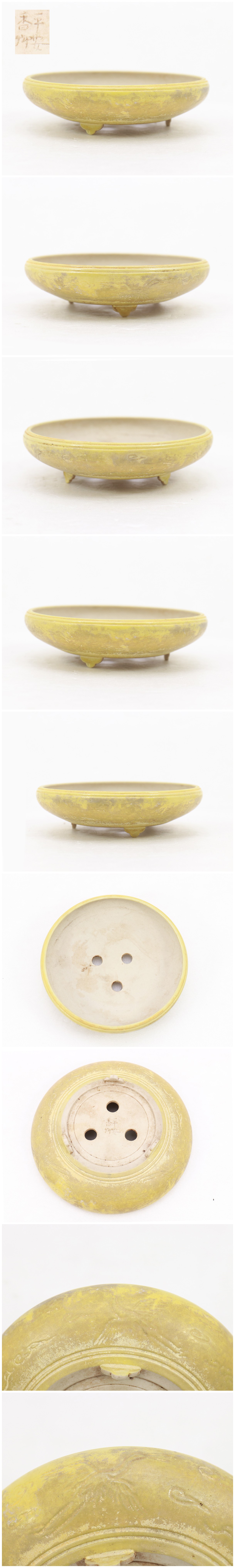 260137 「収集家のコレクター」時代物 三足 平安香艸 作 鳳紋 陰刻 丸形 鉢 小品 盆栽 和鉢 豆鉢 收藏