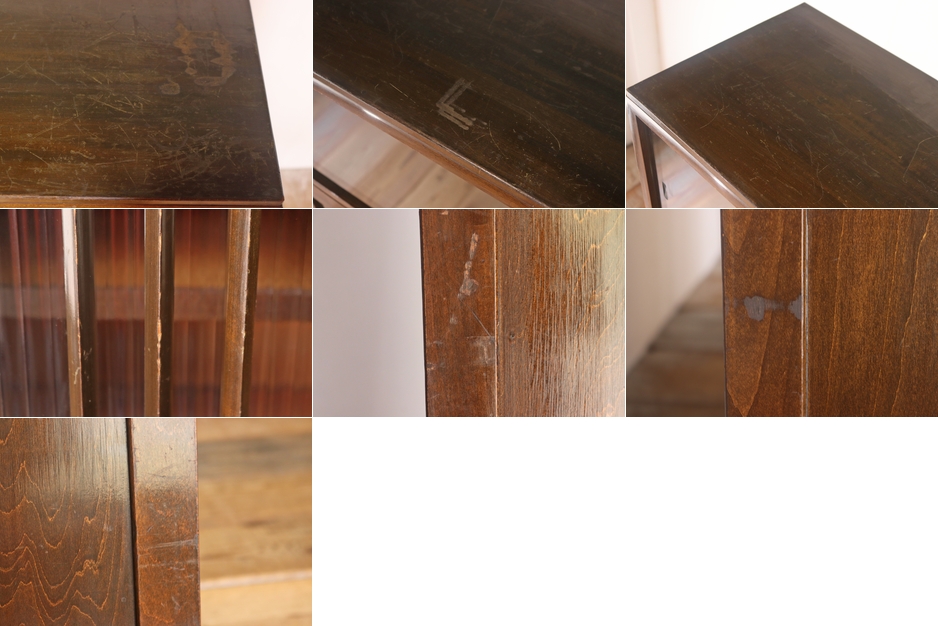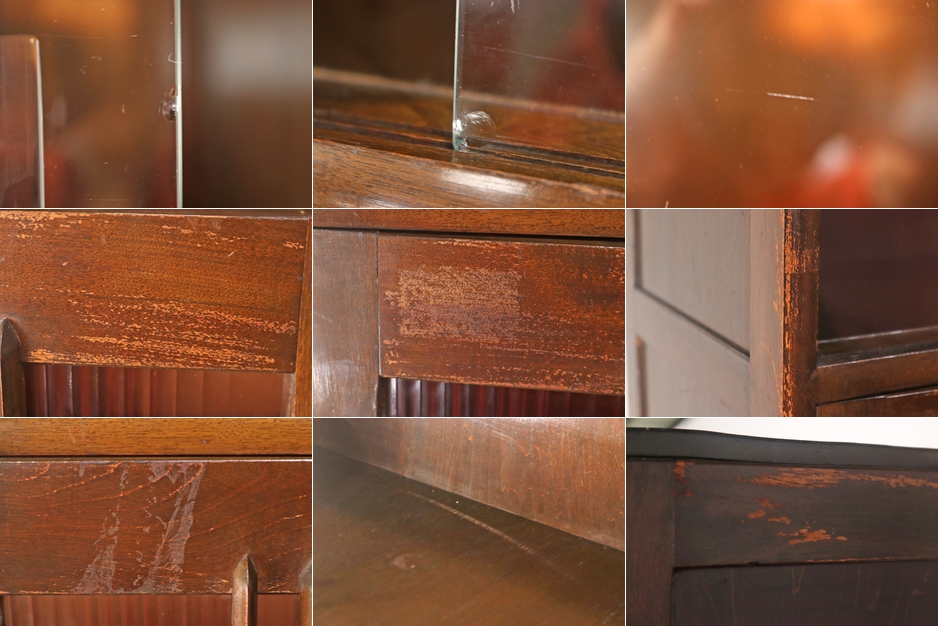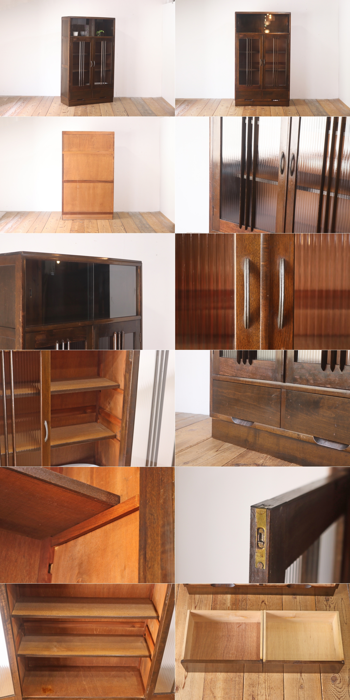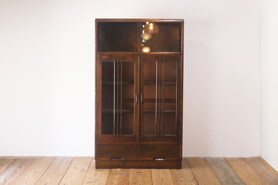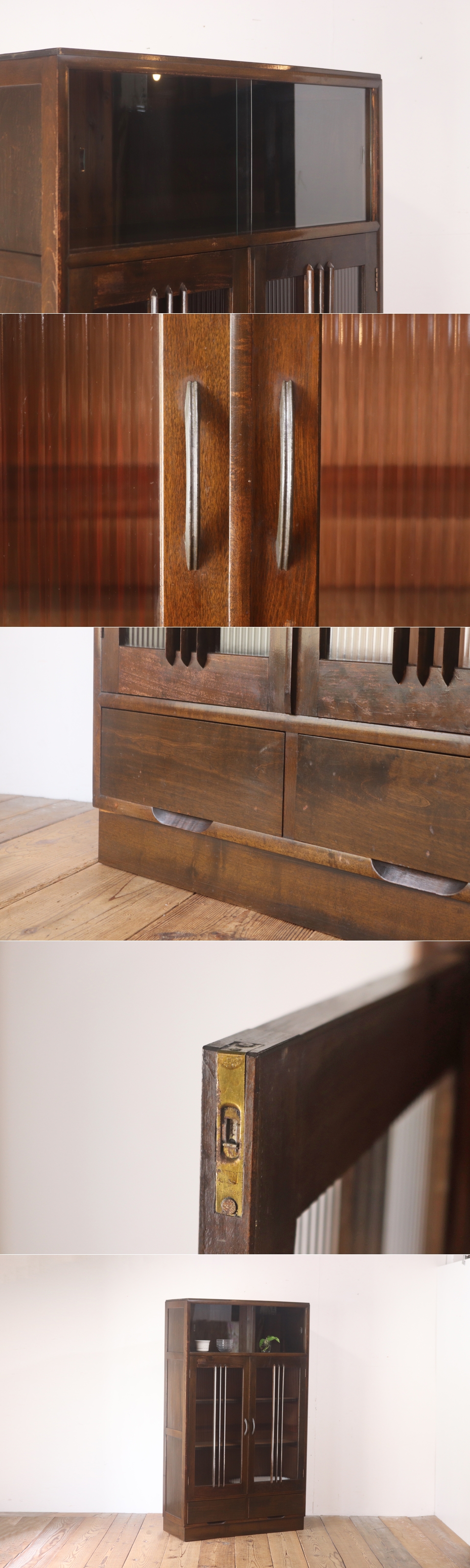 レトロ ガラスキャビネット 本箱 収納 食器棚 くもり モールガラス 引き出し 抽斗 2杯 木製 ヴィンテージ/アンティーク英国/RBT17137 收藏