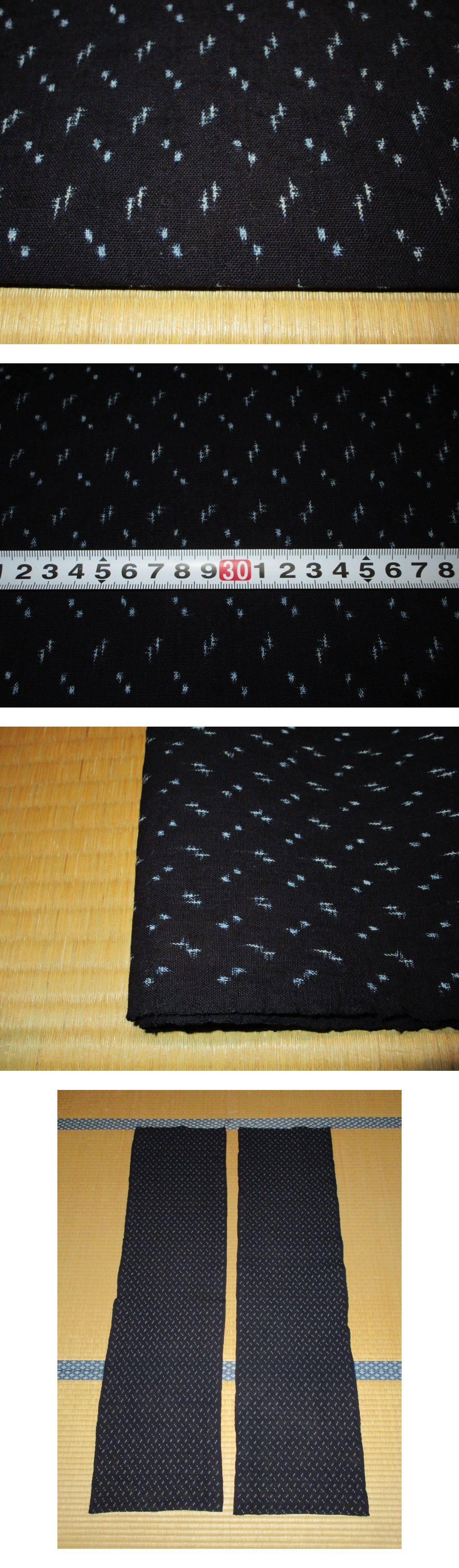 【昔古布】大正期 無傷 美品 厚手の 藍染手織木綿 小あられ絣+小十字絣 2幅 (長合計264) リメイク材料 收藏