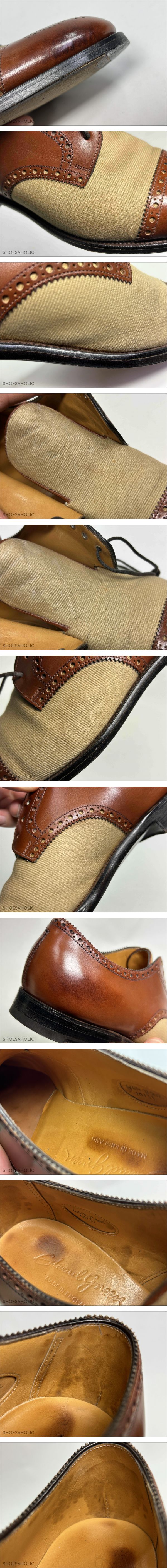 065 / 0318 極上 エドワードグリーン コンビ メダリオンキャップトゥ ブラウン / ベージュ カーフ / 布 6D #202 收藏