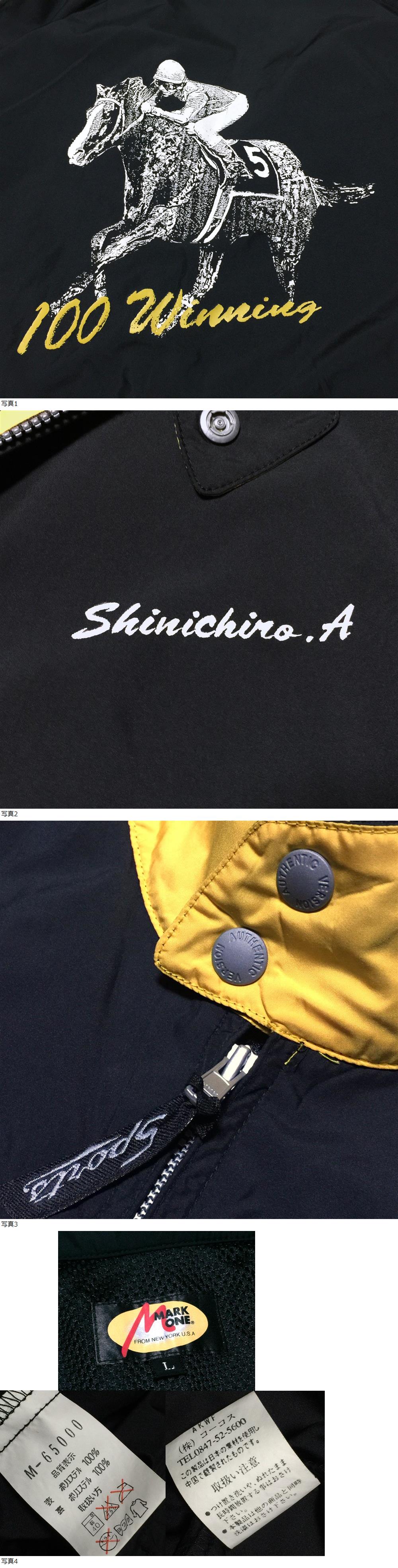 希少 美品 秋山真一郎 100勝記念 100Winning プリント ブルゾン ジャケット L 黒 カネトシガバナー 競馬 騎手 ジョッキー 神戸新聞杯 收藏