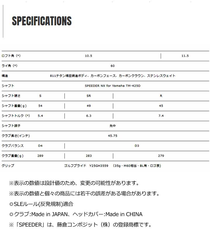 ヤマハ インプレス ドライブスター TYPE/D ドライバー 25【10.5°/SR】シャフト:SPEEDER NX for Yamaha TM-425D INPRES DRIVESTAR 50p即納 收藏