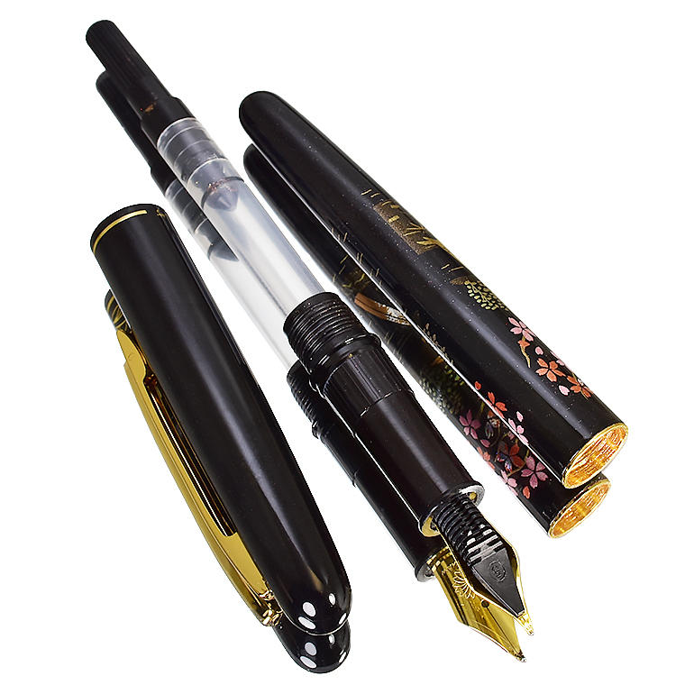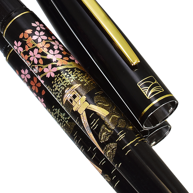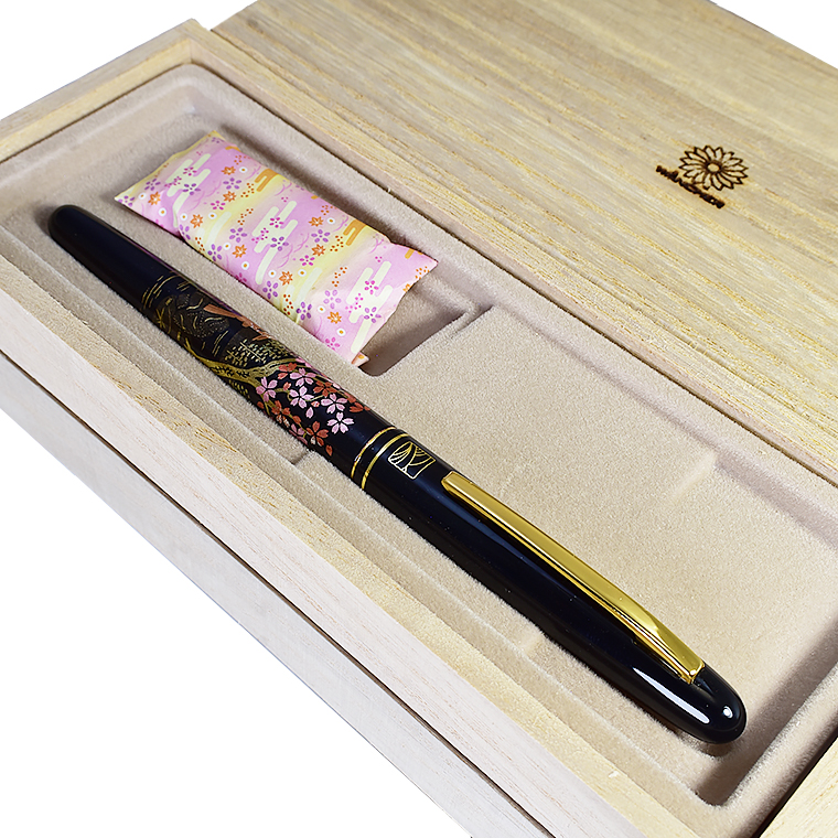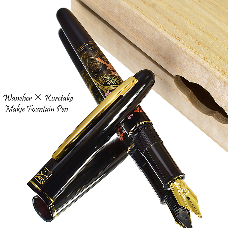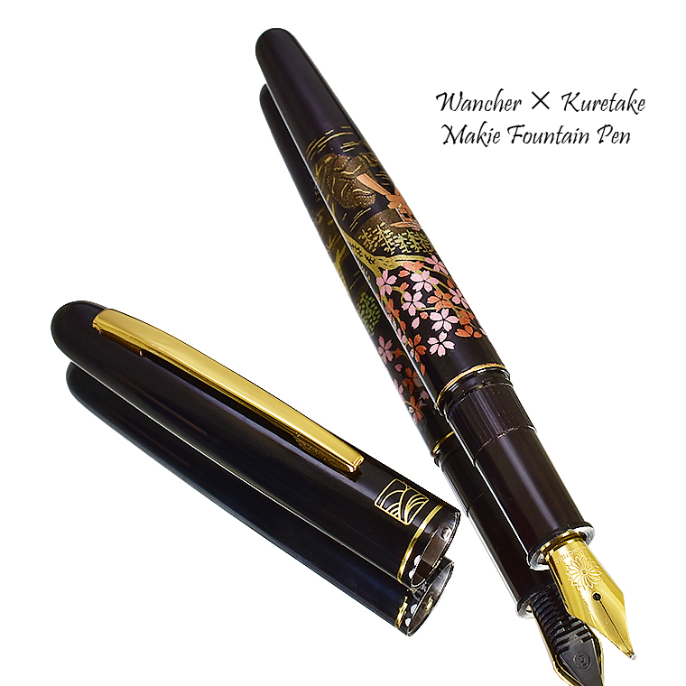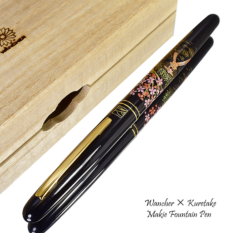 ■●【WANCHER×KURETAKE】 呉竹近代蒔絵万年筆 「桜園」特殊ニブ SHARA-Q 日本伝統工芸 アルミ素材 黒軸 新品 美工 1円~/WKB184715Q 收藏