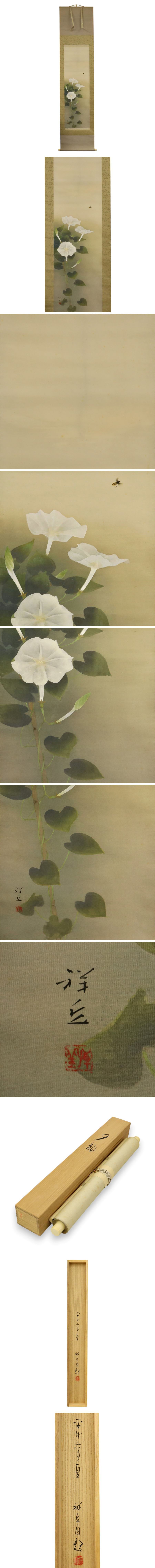 商品名 真作保証 大島祥丘「夕顔」絹本 共箱 備後 掛軸 書画 骨董品 美術品
