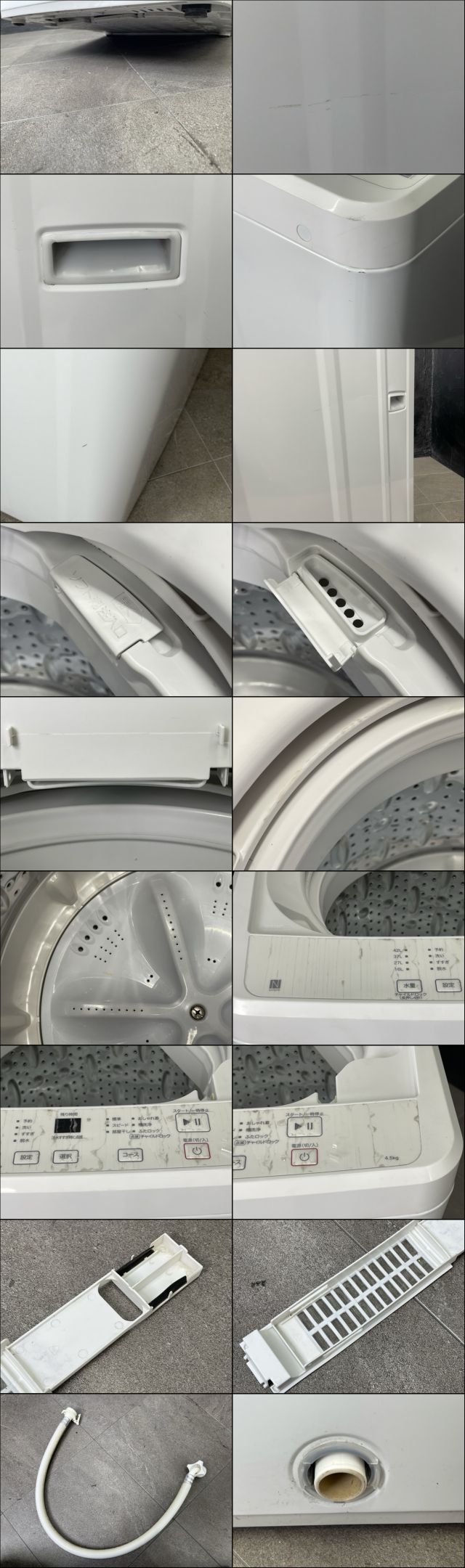 状態チェック担当者のコメント 使用に伴うスレ傷があります。 内部の洗濯洗剤容器と排水ホースが欠品しています。 洗濯洗剤はそのまま洗濯槽に入れる事になります。 天面の蓋には薄い小傷があり、ボタン周辺一体にヒビや浮きがあり、隙間が黒くなっています。 (正面向かって)左側角や背面左側角に黒い傷、右側には白い傷があります。 動作 動作ランク A 動作問題なし