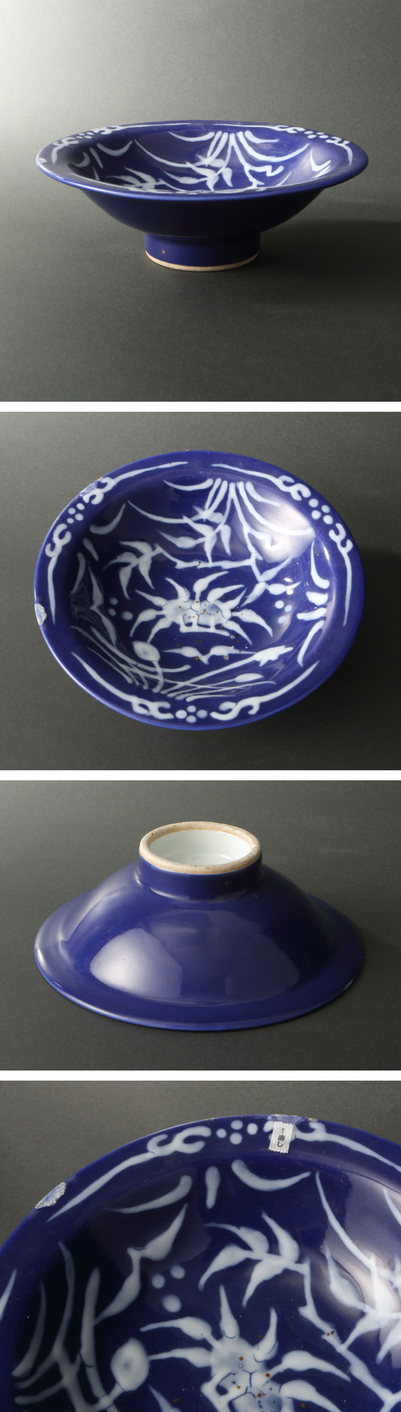 委託HK◇時代 祭藍釉堆白花卉文鉢(中国古美術 霽藍釉 瑠璃釉 餅花手 祭器 景徳鎮 民窯 和食器 茶道具 菓子器) 收藏