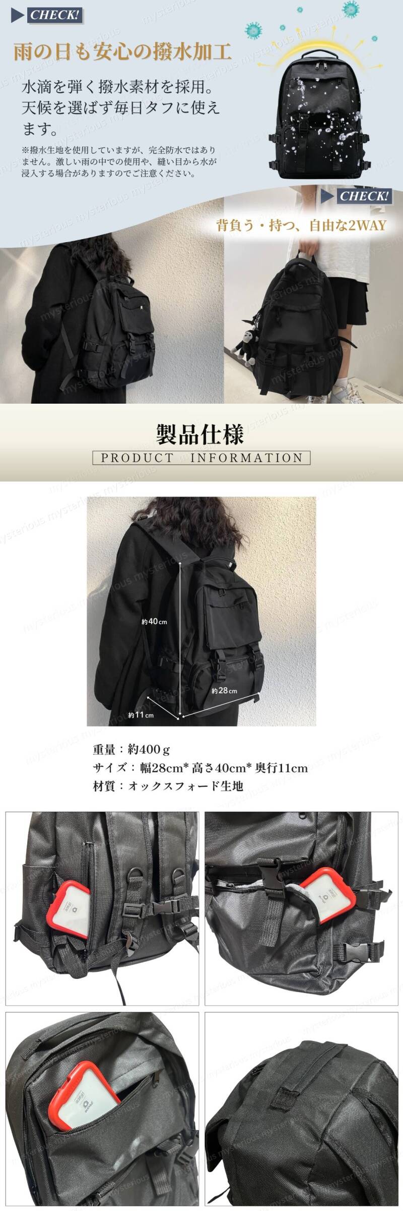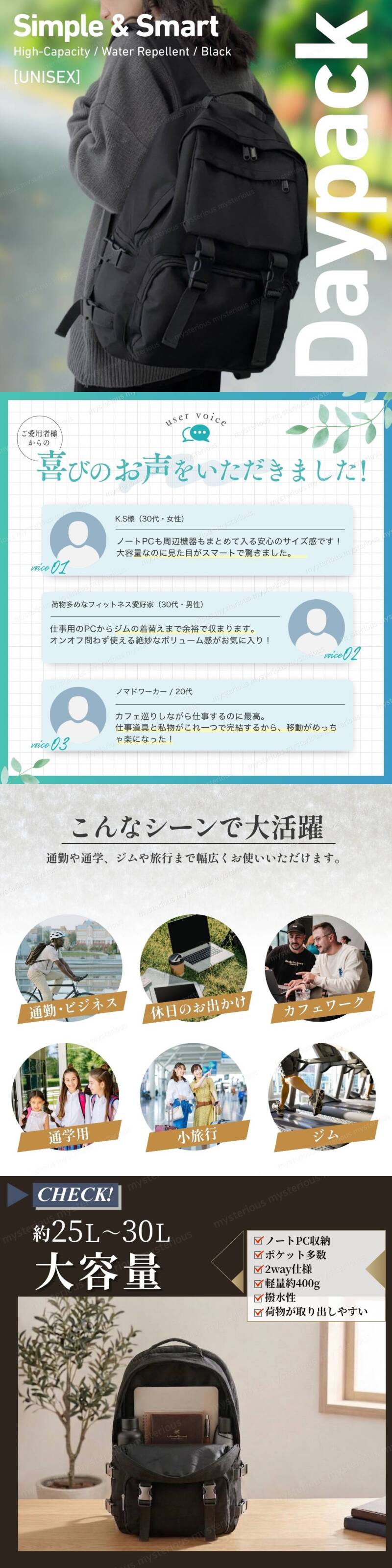 | 大容量・撥水・ミニマル / 男女兼用リュック ブラックカラー |