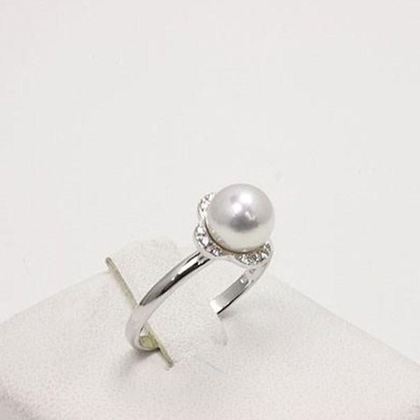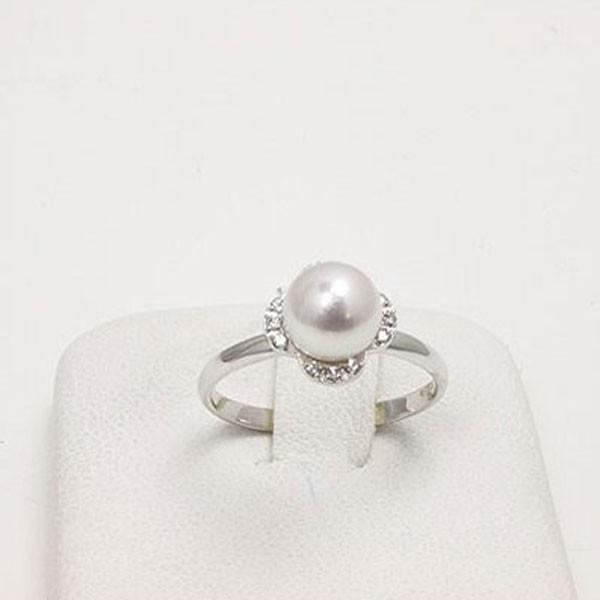 あこや真珠6.5mm-7mm18金ホワイトゴールド製ダイヤ0.06カラットパールリング指輪です。 |