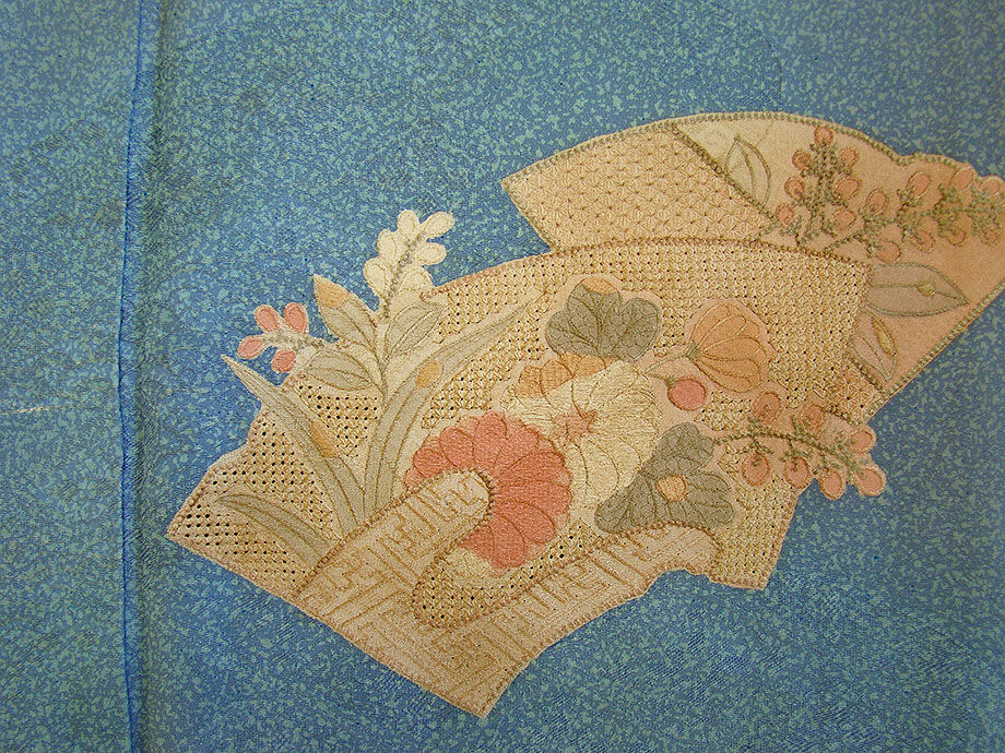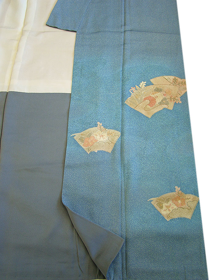 値下げ!時代屋 裄65.6cm 一越地 たたき染 刺繍柄 附下げ 訪問着 正絹 仕立上り 袷 四方木瓜 152cm~158cm HH1111 收藏