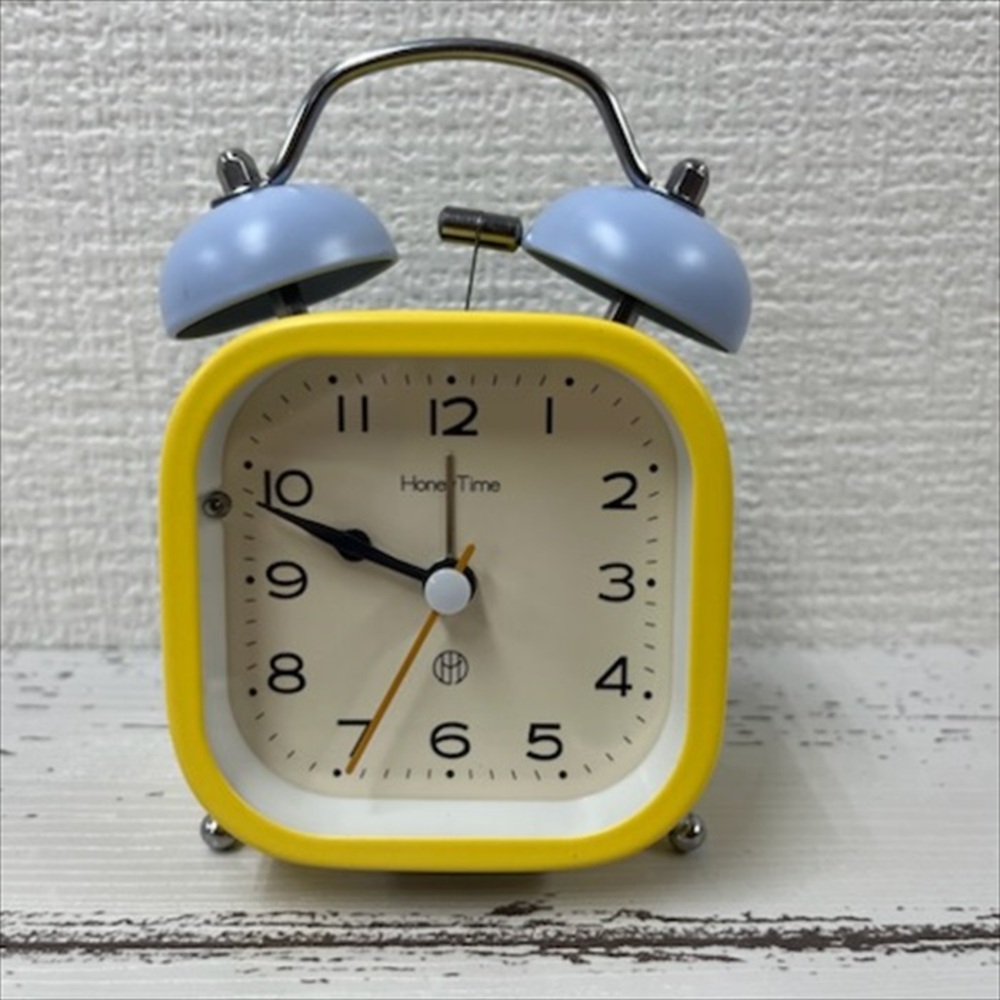 ☆ イエロー ☆ 目覚まし時計 目覚まし時計 おしゃれ ツインベル 角型 目覚まし機能 12cm x 8.6cm 電池式 アナログ サイレントモード 收藏