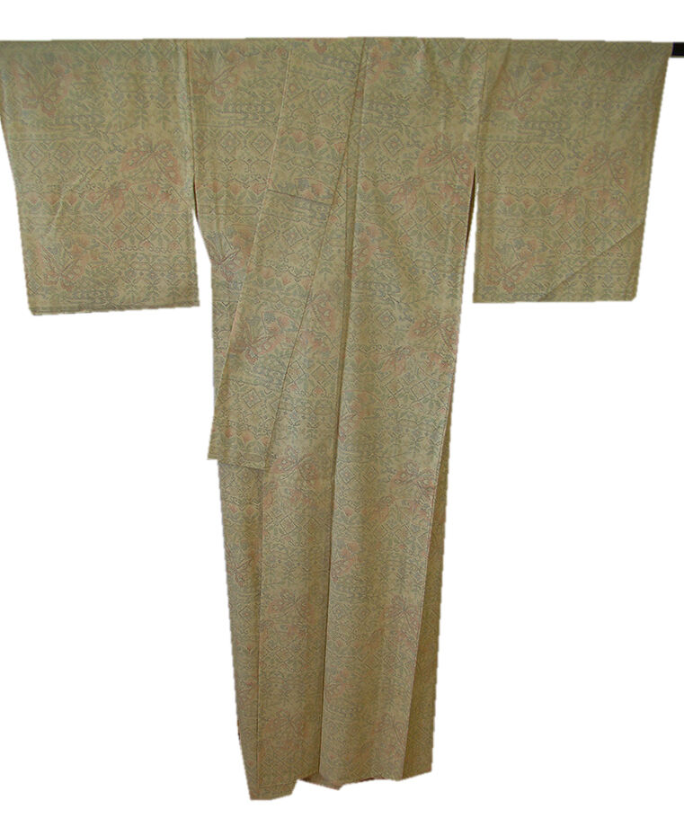 きものしらゆり 身丈155cm 裄63cm 5・6・9月 単衣 S寸 塩沢紬 蝶々 正絹 身長146cm~152cmの方に最適 C089 收藏