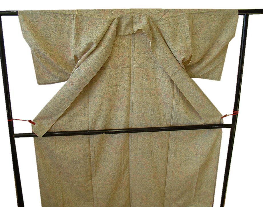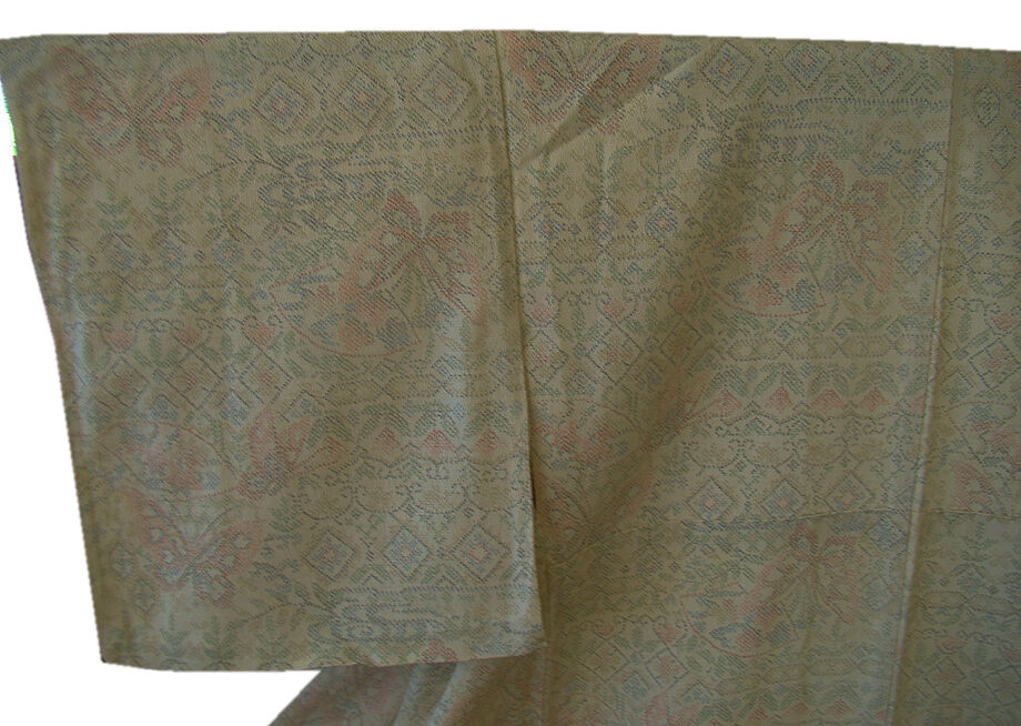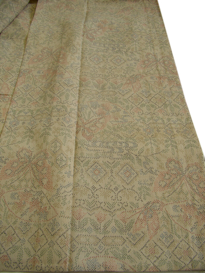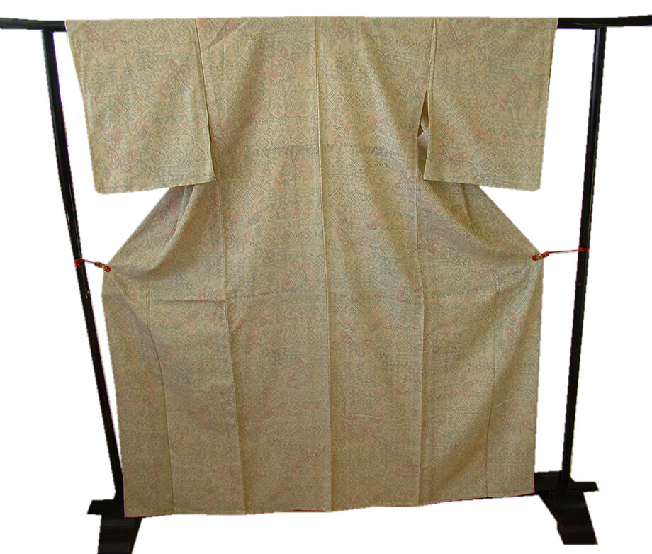 | 商品説明 | こちらのお品は「単衣」仕立てですので、5月、6月、9月にお召頂ければと思います。 着物には、大きく分けて「袷(あわせ)の着物」と「単衣(ひとえ)の着物」と「夏着物」があります。 反物(表地)を着物に仕立てるときに、裏地類をつけるものを袷の着物、 つけないものを単衣の着物と呼び、胴裏や八掛といった裏地がつかない一枚ものの着物です。 また裏地がないため、座る時などにヒップのラインが目立たないよう、 居敷当て(いしきあて)の生地をつけることもあります。 居敷当ては付いておりません。 古くから織物の産地として知られている新潟県の塩沢地方。 「単衣といえば塩沢」と知られるように、初夏と初秋の数ヶ月、 着物通をとりこにして離さない着物。 今では四季を通じ、オールシーズン愛用されており、単衣にも袷にも最適な洒落紬でございます。 他の着物には類を見ない「しゃり感」たっぷりの独特の肌触りと 適度なハリは伝統的工芸品の、塩沢紬ならではのものでございます。 絶妙の地風が着物通の方々を虜にする極上の着心地を誘うシャリ感あるさらりとした塩沢紬、 渋い浅黄色地に赤、緑、青色等の花草や蝶の織柄、 涼しげで爽やかな素材感が愉しく、暮らしに幅広くお召頂ける逸品です。 残念ながら証紙残布は付いておりません。 |