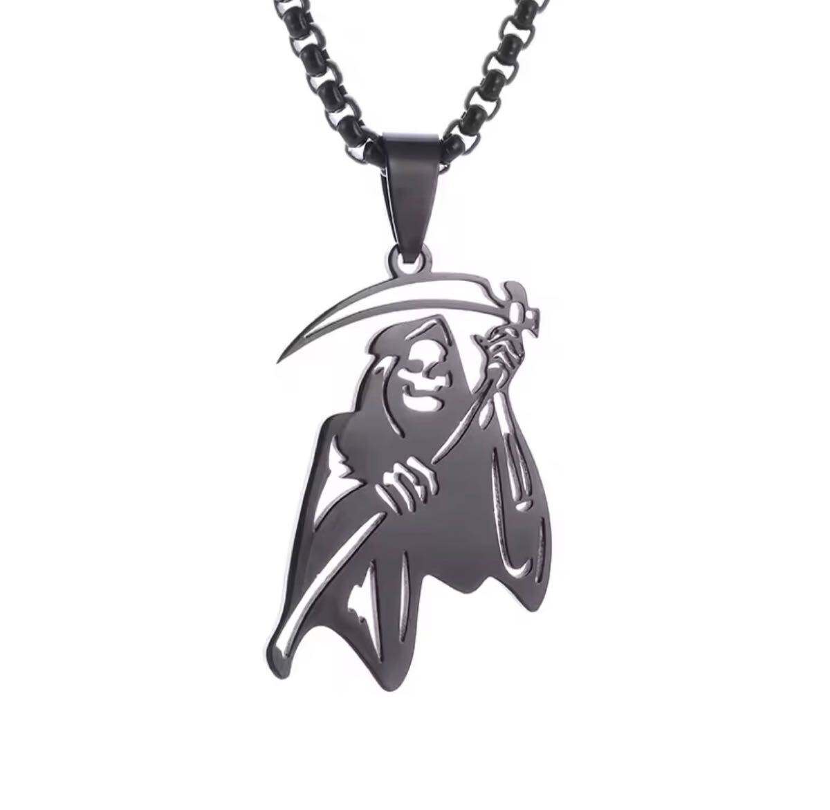 死神 スカルネックレス アクセサリー ネックレス ペンダント 髑髏 骸骨 スカル ドクロ ジュエリー クール パンク ロック 鎌 2890