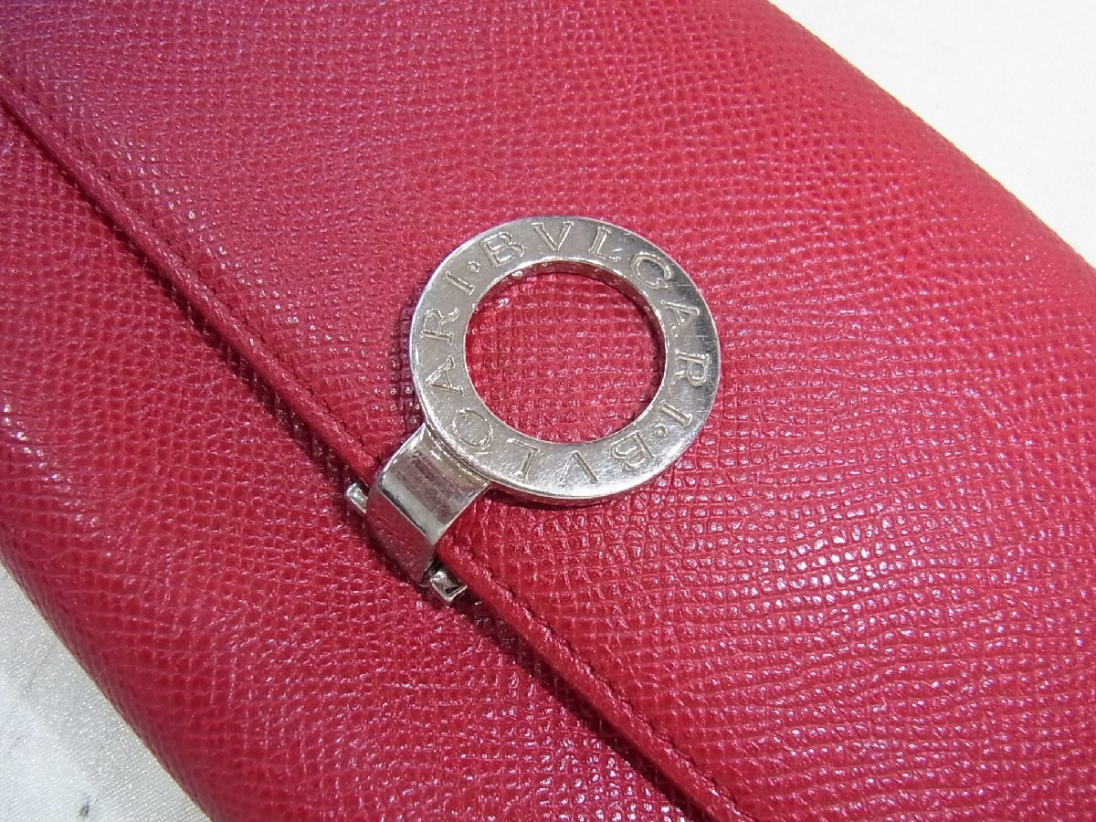 ブルガリ BVLGARI 三つ折り長財布 ブルガリブルガリ レディース レザー 赤 中古品 收藏