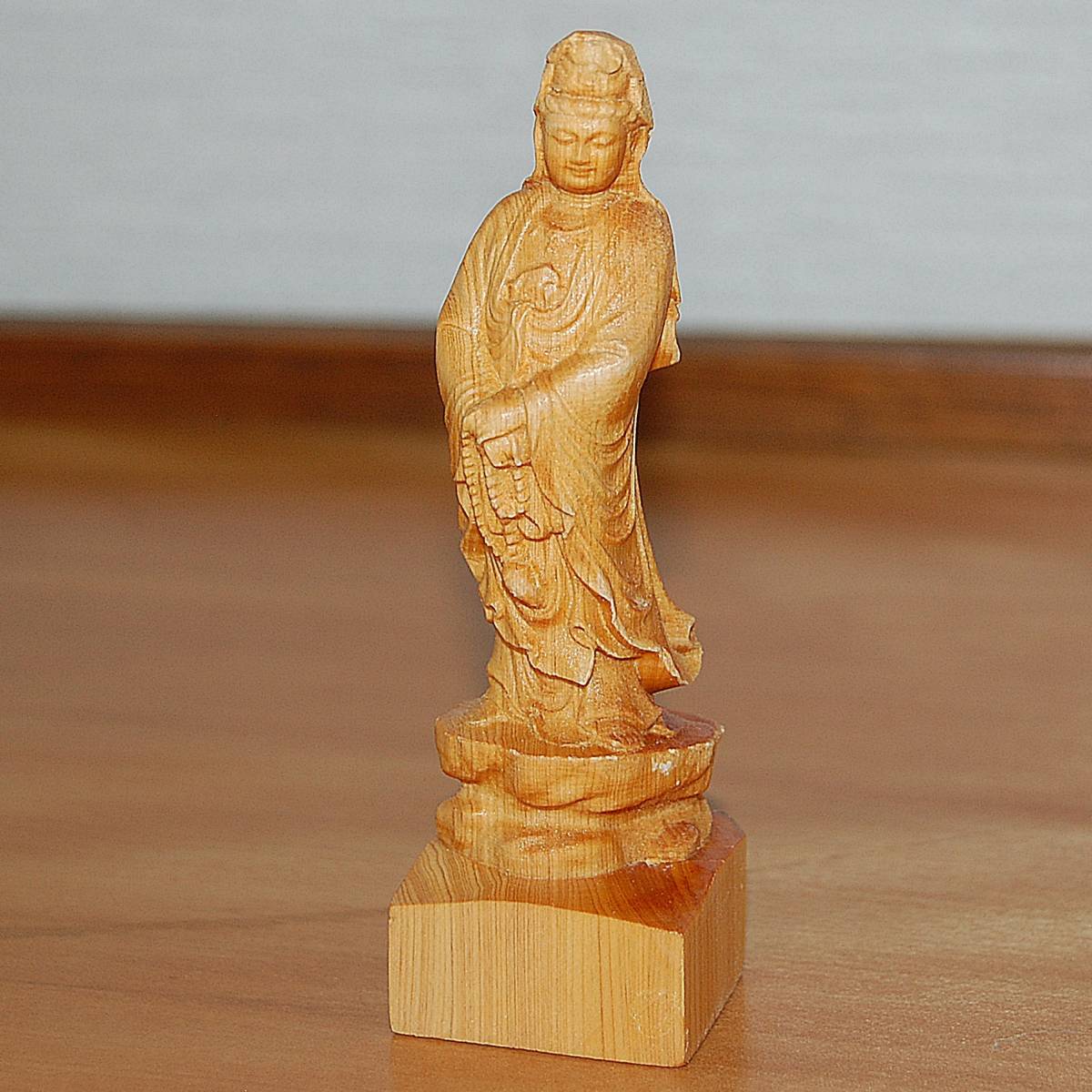 ◆新品!!◆木彫り ミニ 仏像 白衣観音菩薩立像 観音様 観世音菩薩 小仏像 豆仏像★精密細工!!★開運 息災除病 子受け 安産などに!!★ 收藏