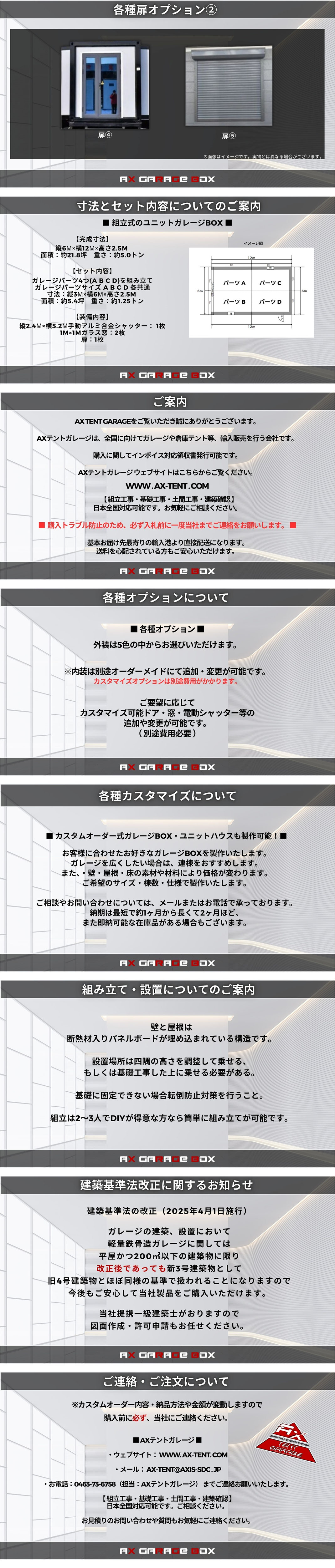 | ユニットガレージBOXキット 6m×12m×2.5m 本体価格 3,350,000円 |