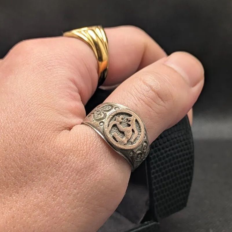 グアテマラ産 スターリングシルバー925 24号 シグネットリング メンズ 男性 ラテンアメリカ エスニック ゴールドトップ アンティーク 良品 收藏