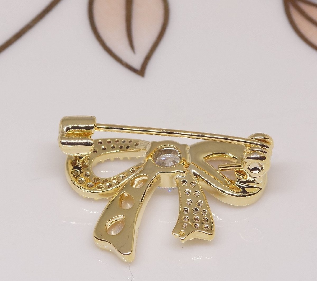 18K RGP ゴールド ダイヤ CZ 天然貝殻 リボン ブローチ gx5110 |