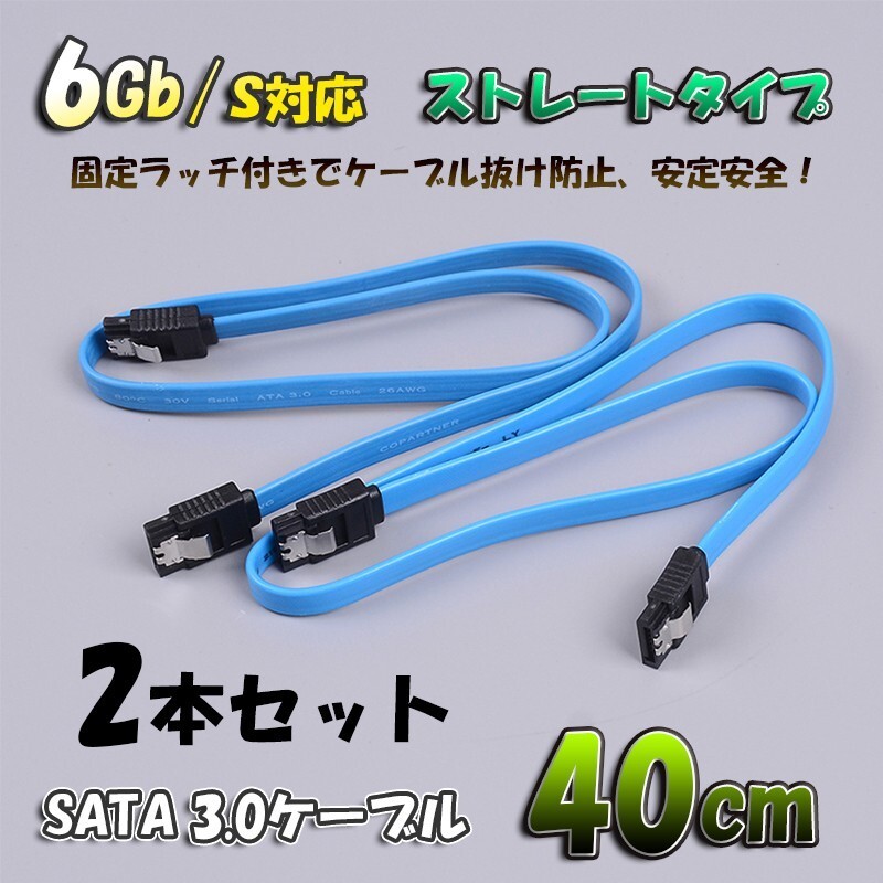 新品 SATAケーブル 固定ラッチ付き SATA3.0 速度6Gb/s対応 全国送料無料 ブルーケーブル 【40cm】x2本セット 收藏