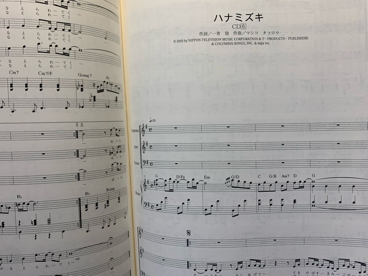 楽譜 CD付 混声三部合唱で ひまわりの約束 翼をください ベストヒットソング特集 定価2500円 2015年ドレミ楽譜発行 表紙裏表紙折れ等多少傷みあります、その他程度は普通ですが新品ではありませんので御理解のある方よろしくお願い致します。