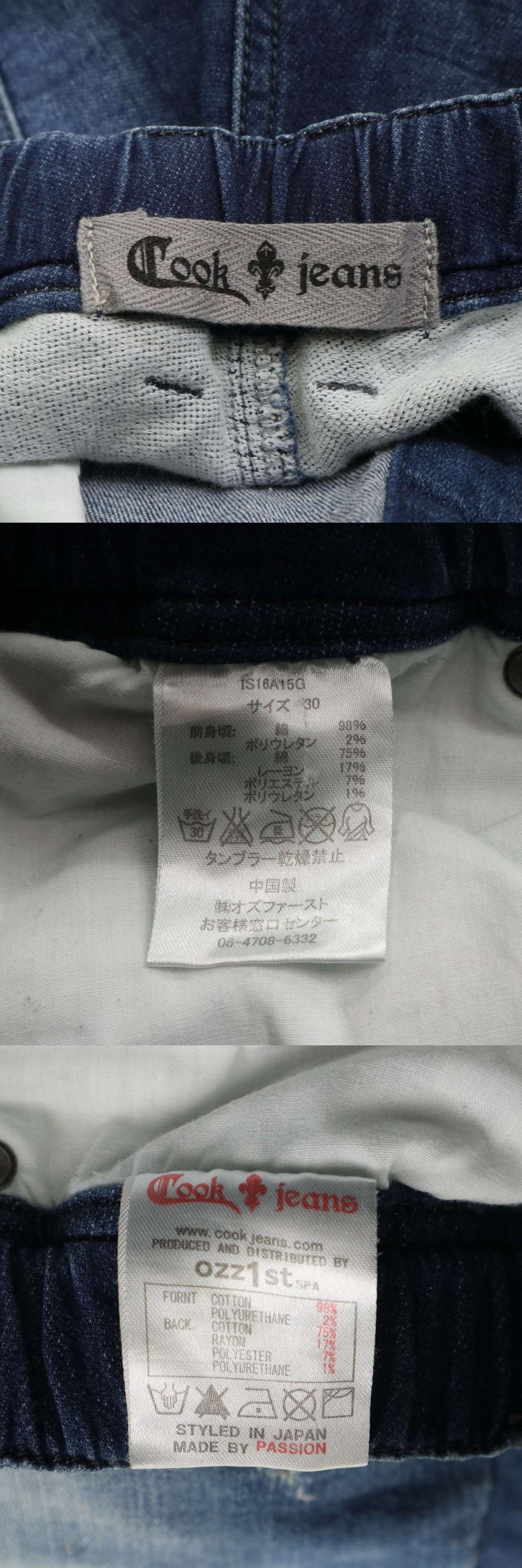 Cook jeans クックジーンズ 通年 ダメージ加工★ 異素材切替 ストレッチ スウェット デニム パンツ ジーンズ Sz.30 メンズ C5B01214_3#R 收藏
