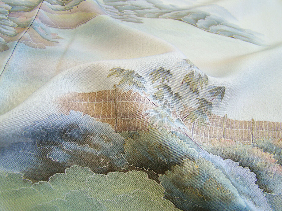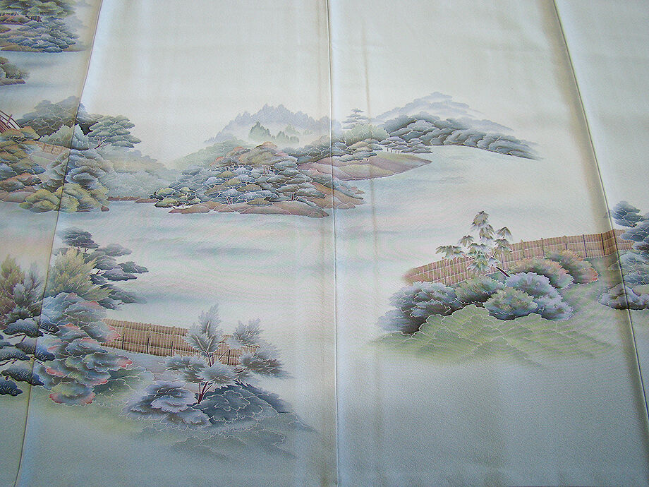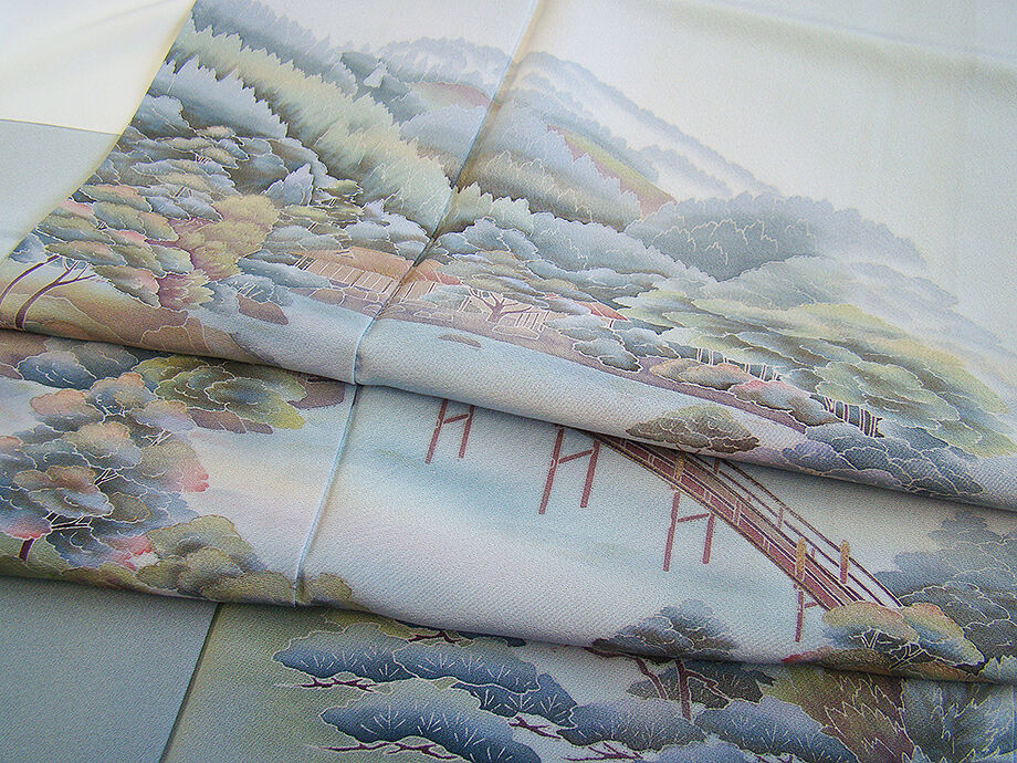 ★美品◆清爽感に溢れ染技光る品格に満ちた表情豊かな着物姿!! 作家物!極上ちりめん地に風景柄の趣に満ちた上品な訪問着(正絹) C953★ | |