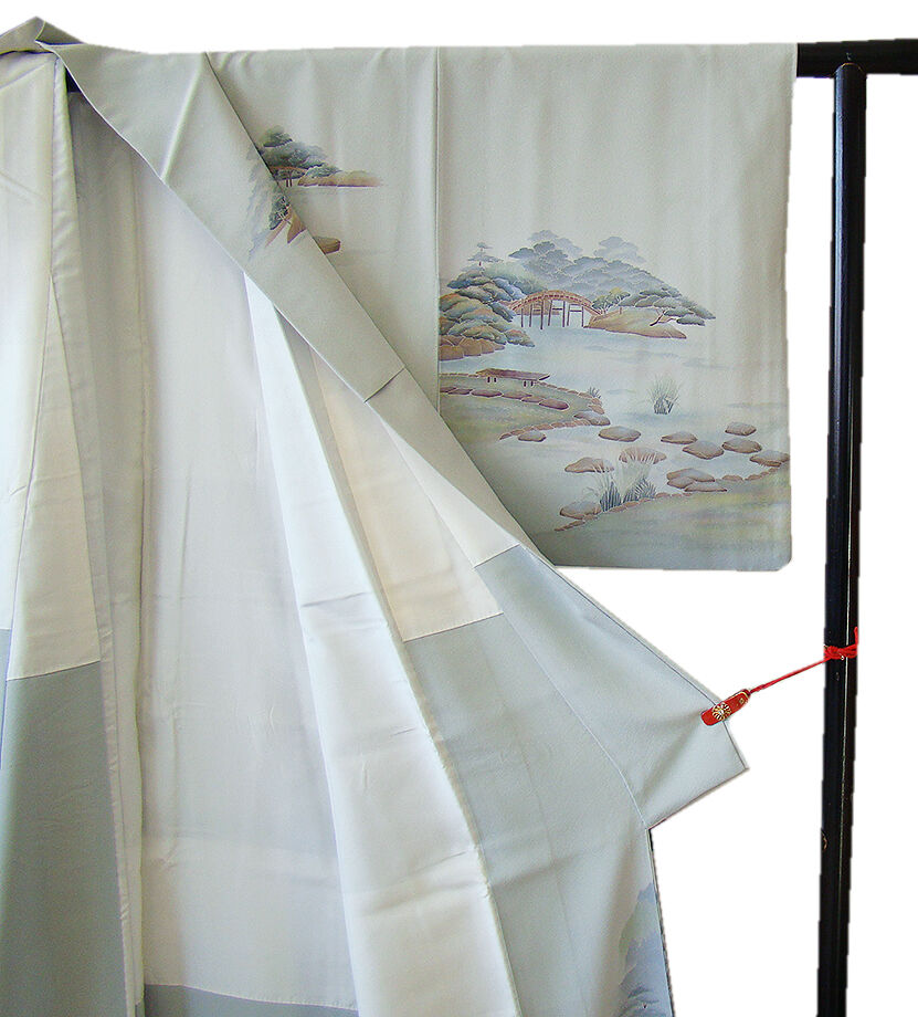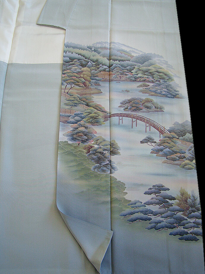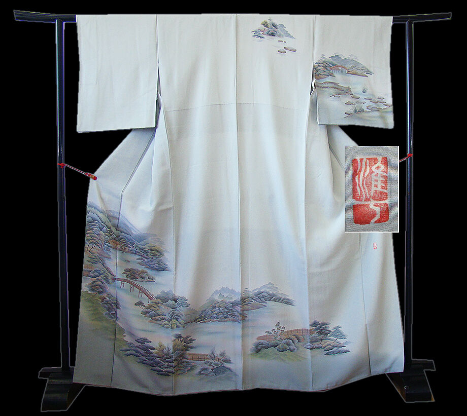 | 商品説明 | こちらのお品は「袷」ですので10月から5月までお召頂ければと思います。 とてもしなやかで柔らかな手触りの着心地良い重めの極上ちりめん地の生地、 藍白色地に風景柄の染柄、 気品に満ち溢れた彩りが正統派のお着物として一枚は欲しい逸品の素敵なお着物です。 八掛は共布に柄入り(正絹)、作家の落款入り、幅広い年代の方にお召頂けます。 |