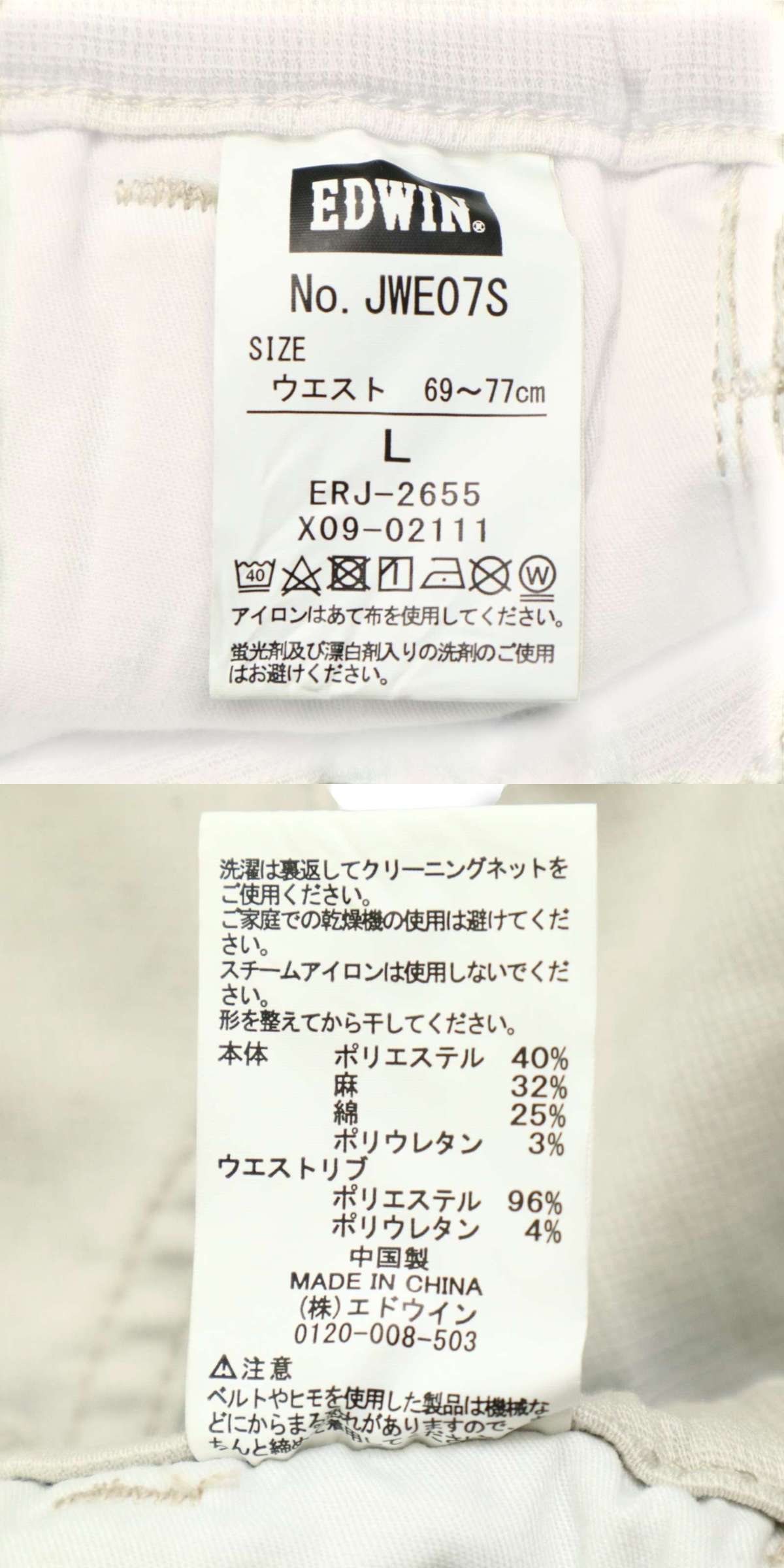 EDWIN エドウィン JME07S 春夏 ストレッチ★ 麻 リネン混 イージー テーパード パンツ Sz.L メンズ C5B01524_4#P 收藏