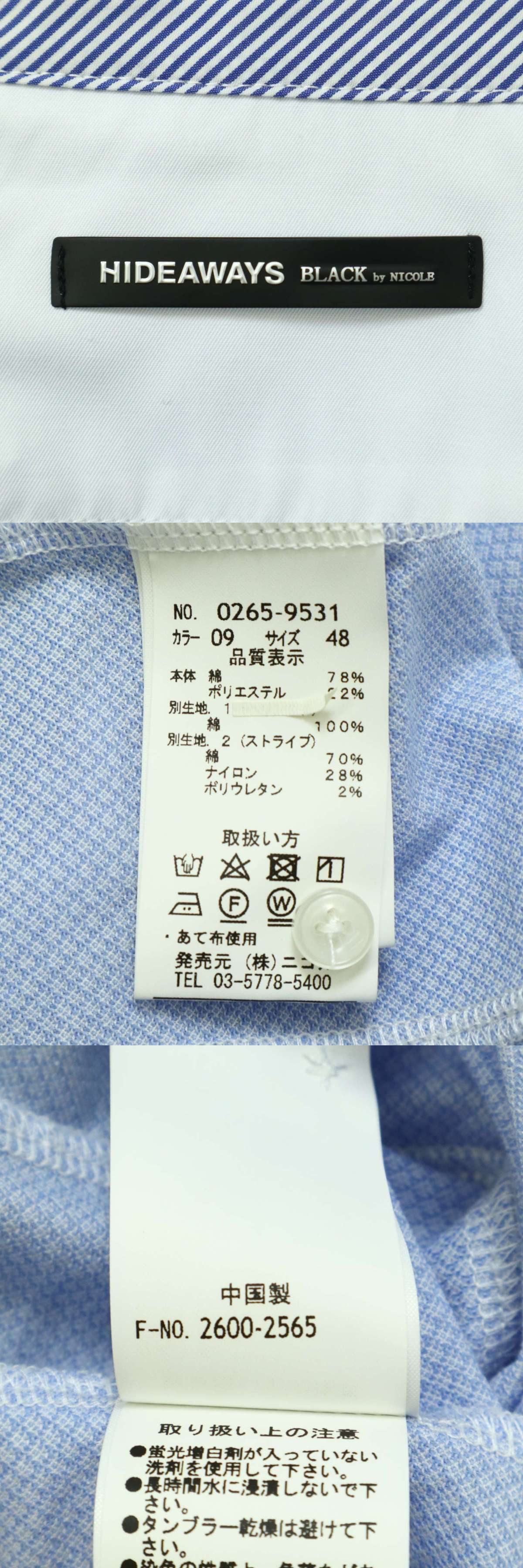 【美品】HIDEAWAYS BLACK by NICOLE ハイダウェイ ニコル 襟ストライプ★ 半袖 イタリアンカラー ポロシャツ Sz.48 メンズ C5T03968_4#A 收藏