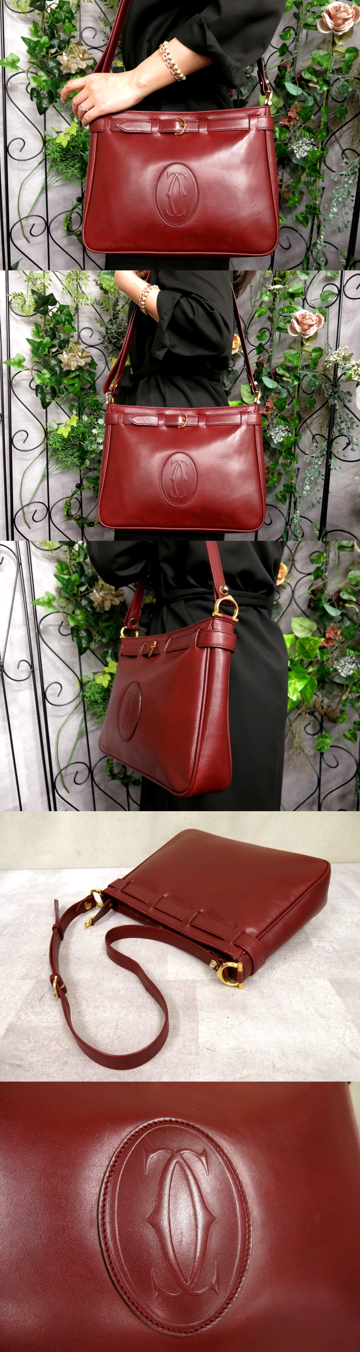 ●超美品●Cartier カルティエ●マスト●カーフ レザー 本革●ショルダー バッグ●ボルドー●ゴールド金具●B5 書類 収納 かばん●Js57051 收藏