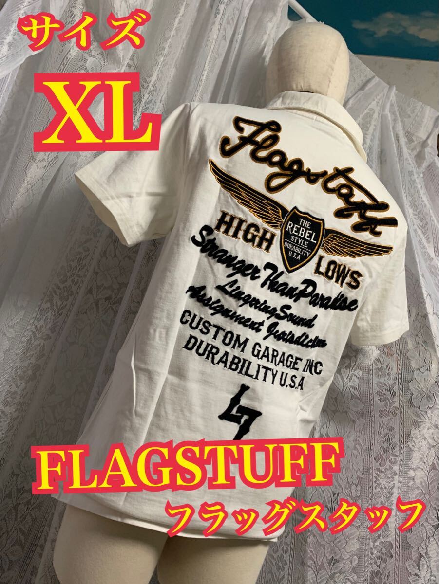 FLAGSTUFF フラッグスタッフ 半袖 ポロシャツ バイカー 刺繍ロゴ 白 XLサイズ 收藏