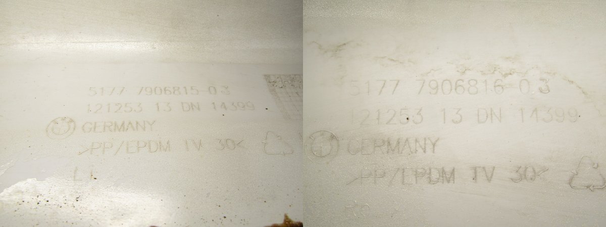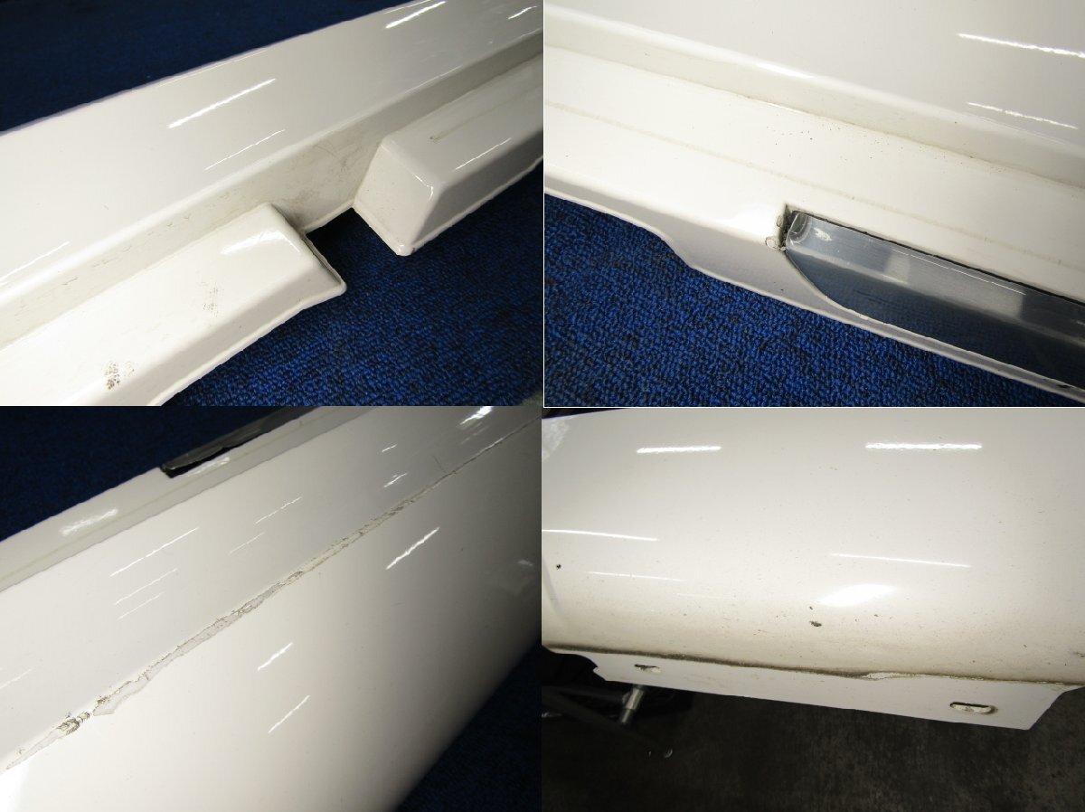 ※樹脂製、特有の凹みが多数あります。 ■取り付け部分に問題はありません。 ■左:中央ラインに13㎝のガリ傷があります。 ■右:中央ラインに46㎝のガリ傷があります。 :4㎝のガリ傷があります。 :後方に6×4㎝のガリ傷があります。 :中央に5×10㎝の凹みがあります。 ■下部に飛び石傷が多数あります。 ■メッキ部分に曲がりが見られます。 ■全体的に傷、飛び石傷、水垢、汚れが多数あります。 ■画像に写るものがすべてとなります。 |