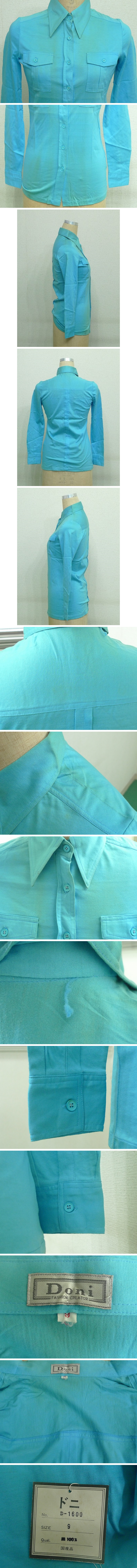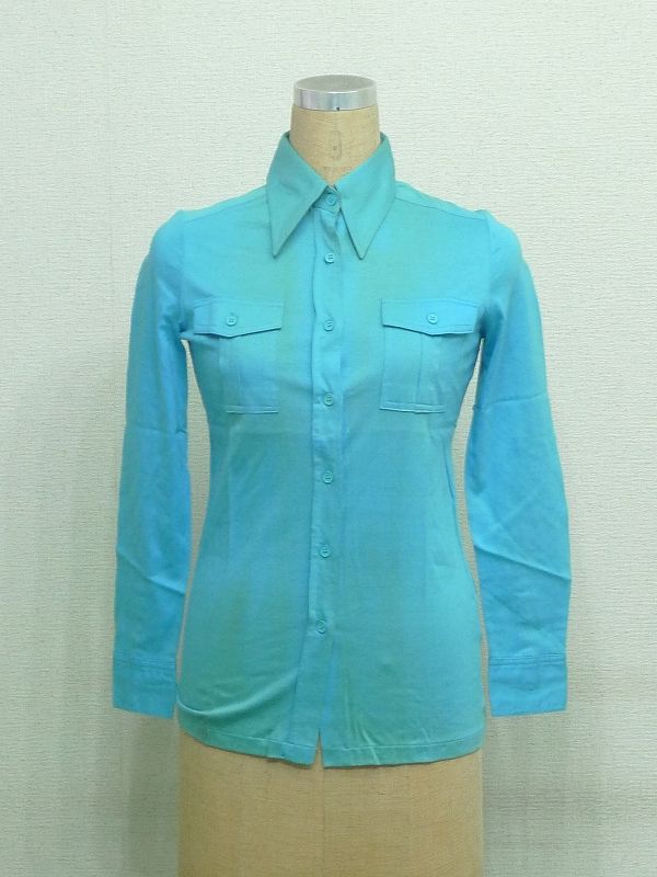 60SR32★昭和レトロポップなファッションに派手カラーシャツ ニットシャツ 長袖 9号 ブルー系 綿100% 昭和元禄 アングラポップ 收藏