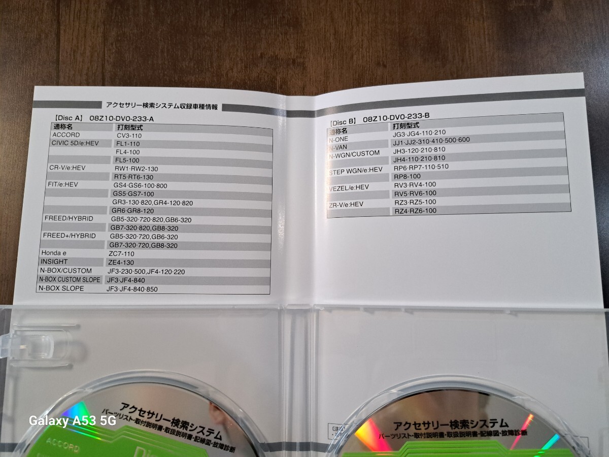 @7 未使用 ホンダ アクセサリー検索システム DVD-ROM 2枚 '23/Mar 2023年3月版 パーツリスト 配線図 故障診断 フィッ卜 フリード N-BOX 等