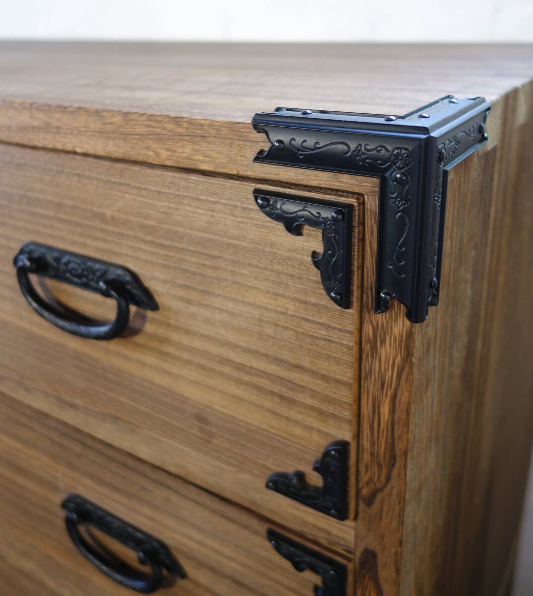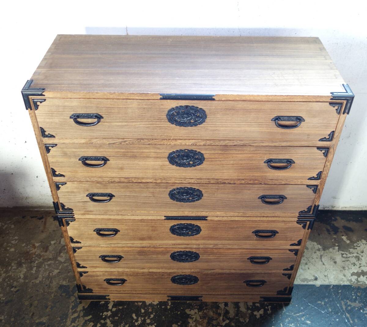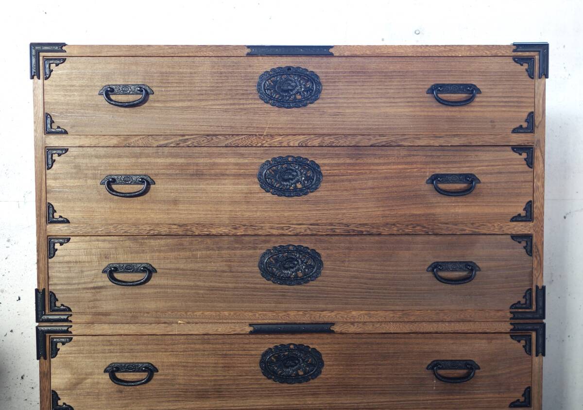 *伝統工芸 工芸美術 レトロ 高級和家具 箪笥 *日本製 生産地 岩手県 *桐箪笥 重箪笥 二段六杯 桐天然木 本焼みがき仕上 *花唐草 牡丹花文 金具黒色 *EY-530 1407-3 *鍵と転倒防止金具 付属 *丸石商事株式会社謹製 |