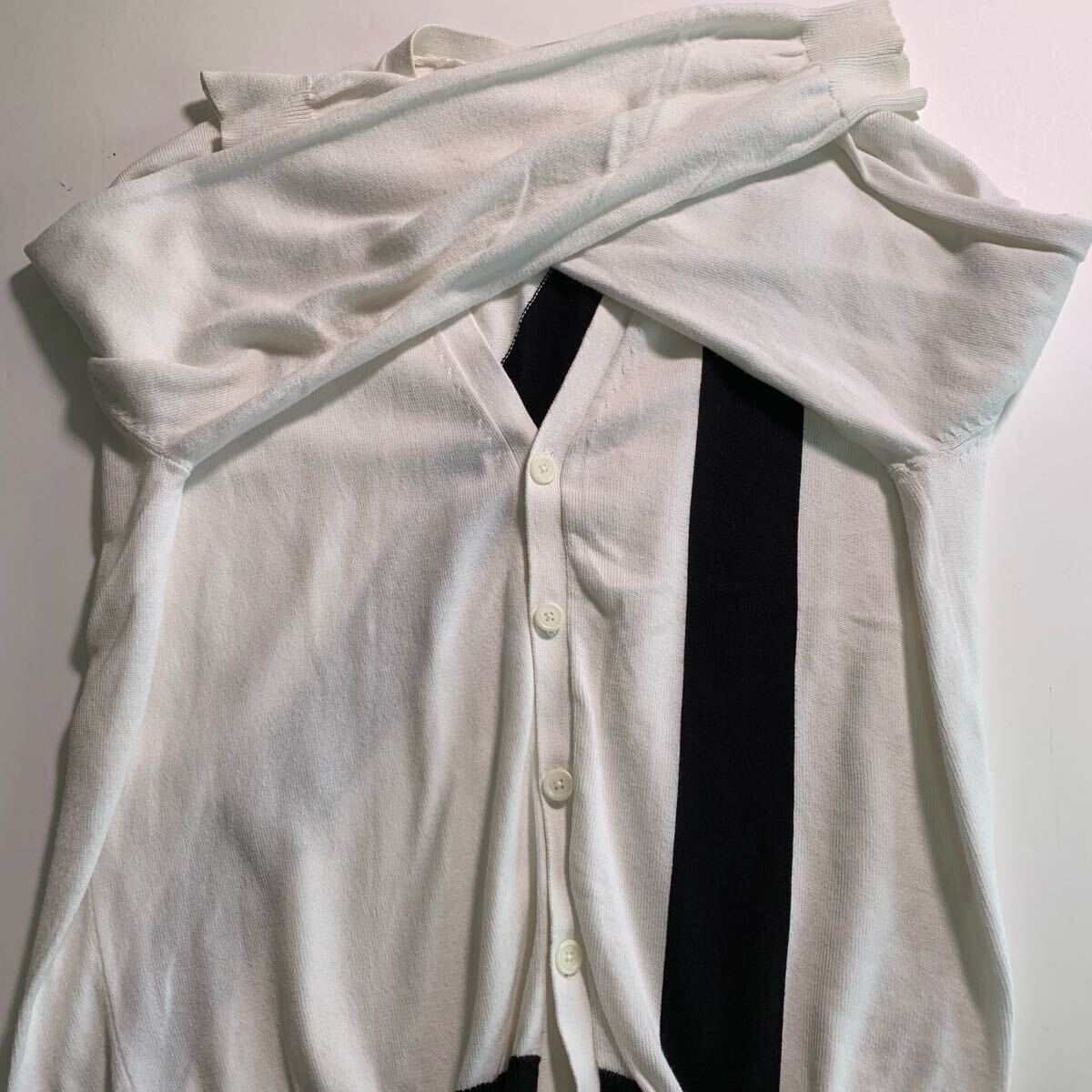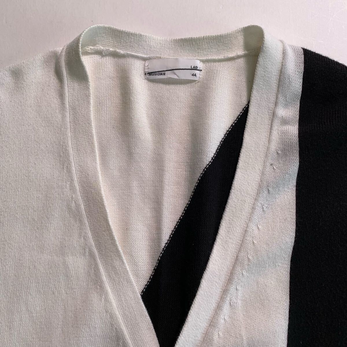 LAD MUSICAN カーディガン 44 コットン 白黒 ツートンカラー ロゴ ニット セーター 收藏