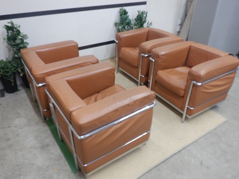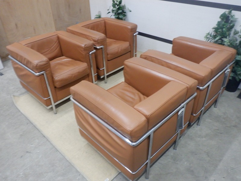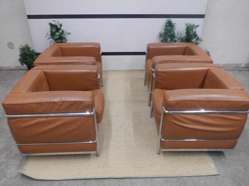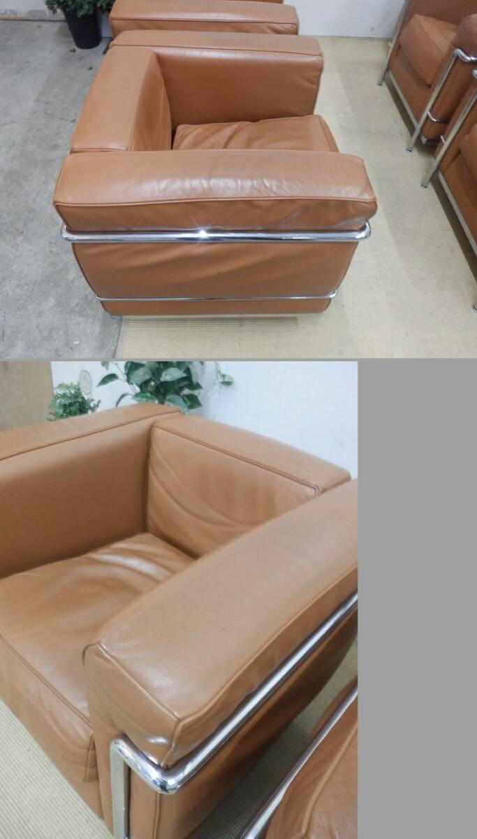 TKR7G-46/Cassina/カッシーナ/正規品/LC2 /ル・コルビュジェ/1Pソファ/1人掛け/本革/レザー/ブラウン系/4点セット 收藏