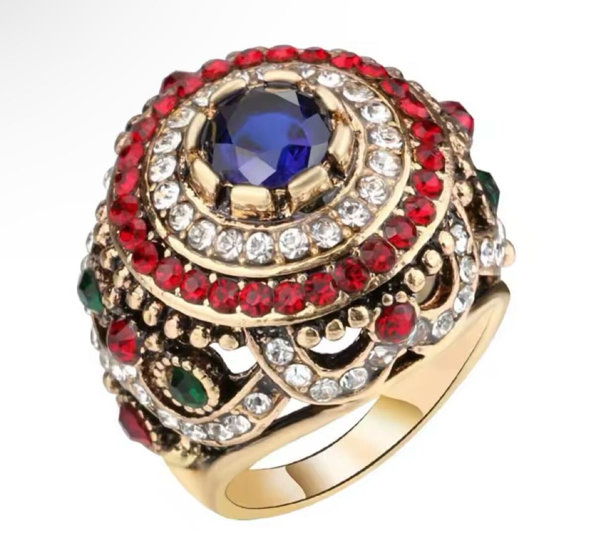 1円【大目玉セール!装飾指輪 リング ★Czダイヤ アンティーク メンズ レディース ジュエリー シルバー ゴールド 女王 王冠 ブルー レッド 收藏