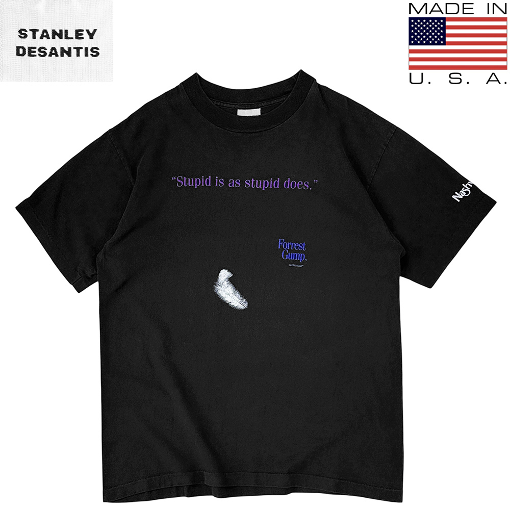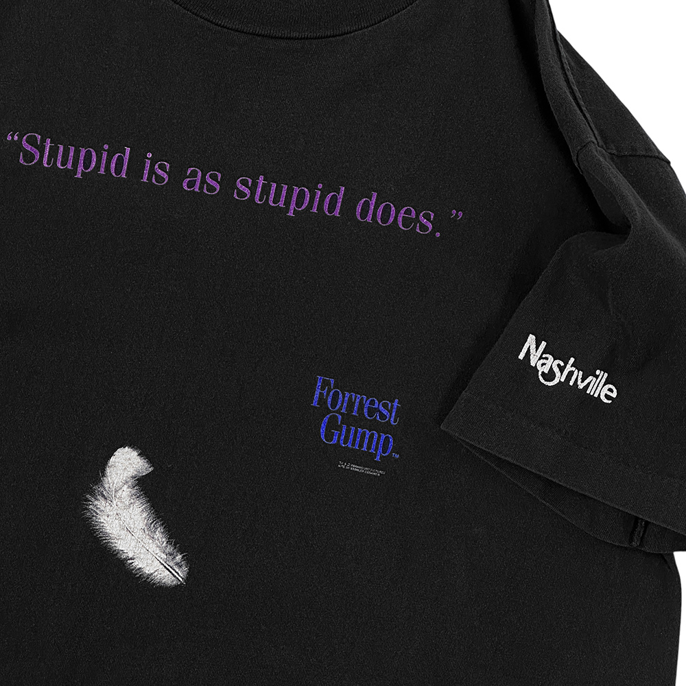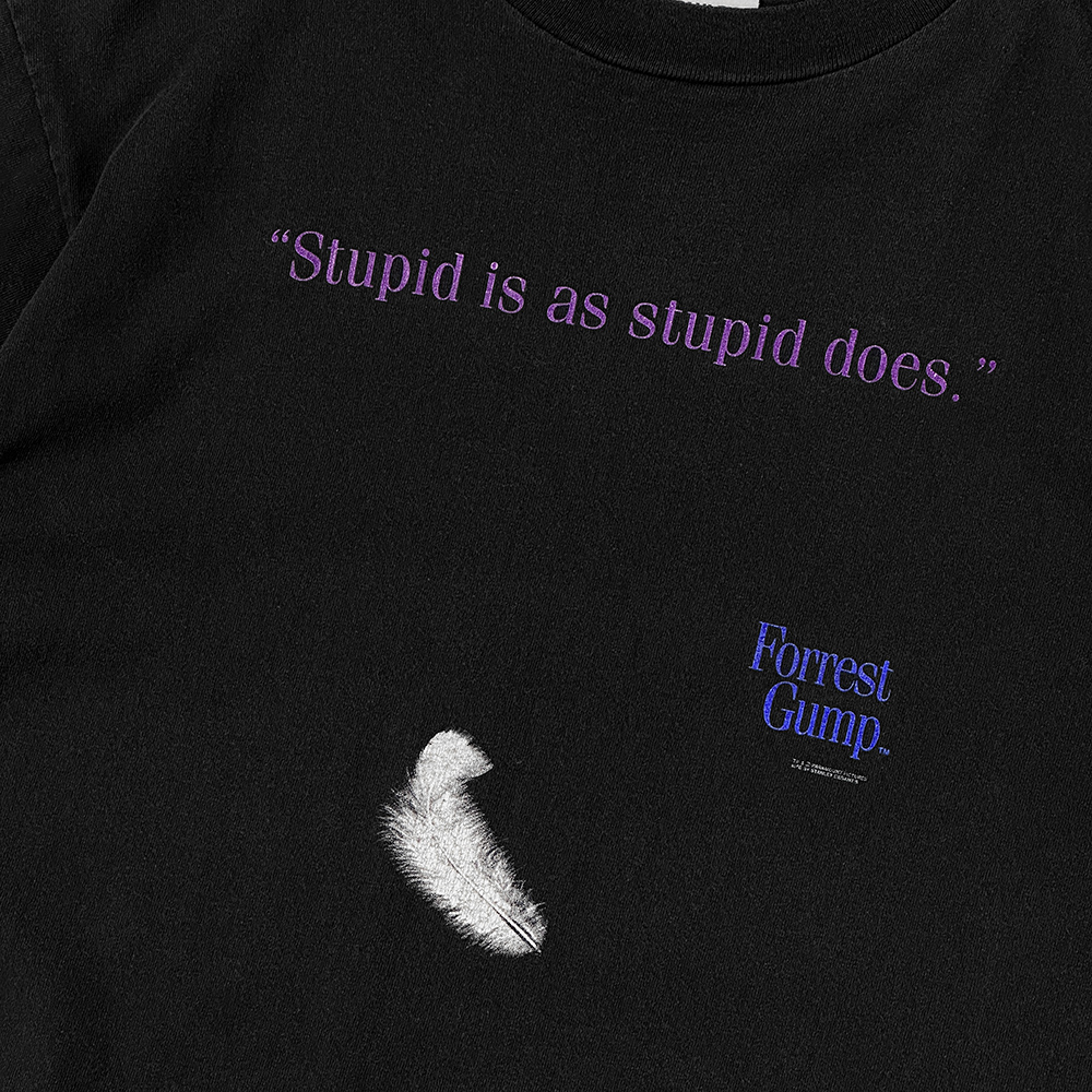90s ビンテージ MADE IN USA製 フォレスト ガンプ FORREST GUMP Tシャツ 黒 L 極上 美品 Stupid is as stupid does ブラック フェード 映画 收藏