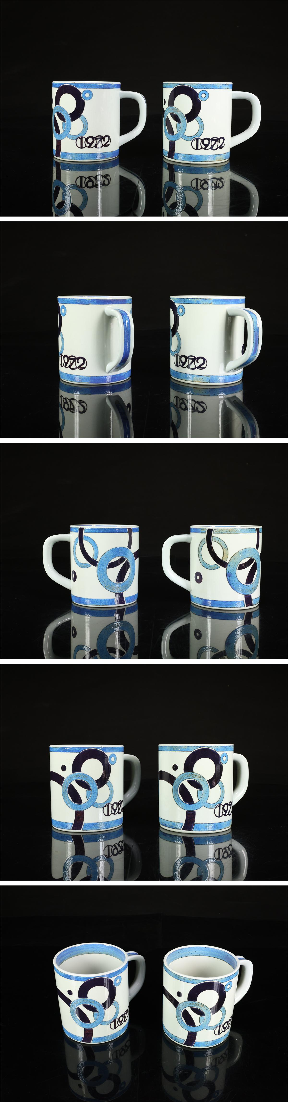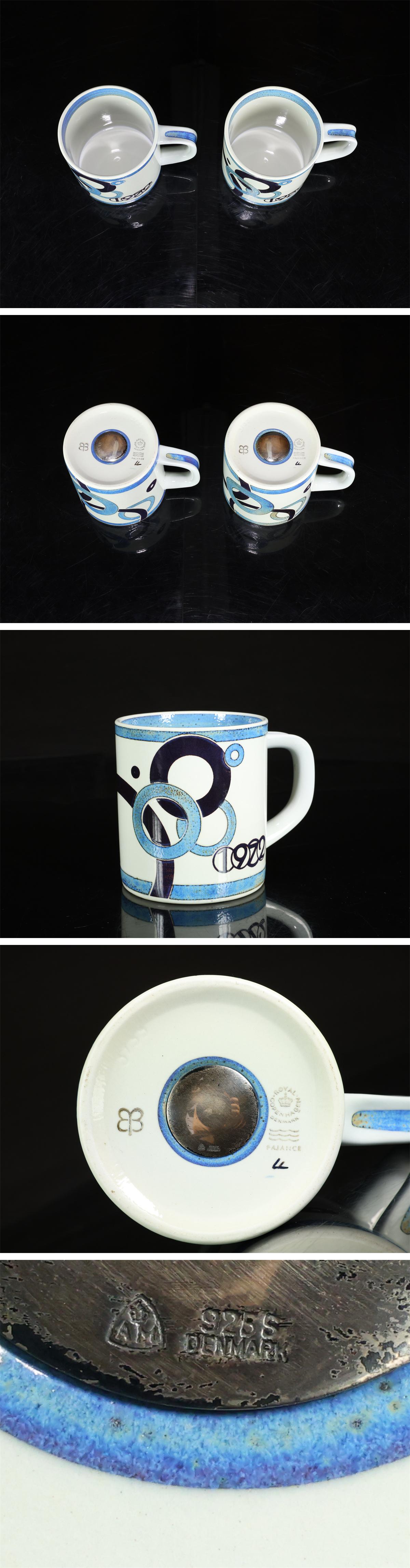 【吉】CM182 ROYAL COPENHARGEN 【ロイヤルコペンハーゲン】 1972年 ラージサイズ 銀盤付 イヤー マグカップ 2点 一対/銀の変色あり! 收藏