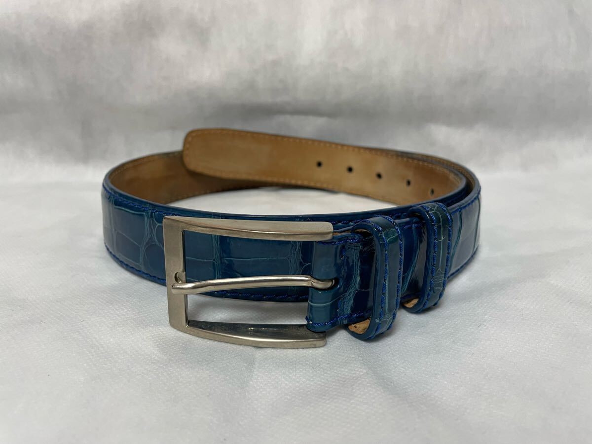 VACCARI ヴァッカーリ クロコダイル クロコ ベルト イタリア製 メンズ ブルー 青色 收藏