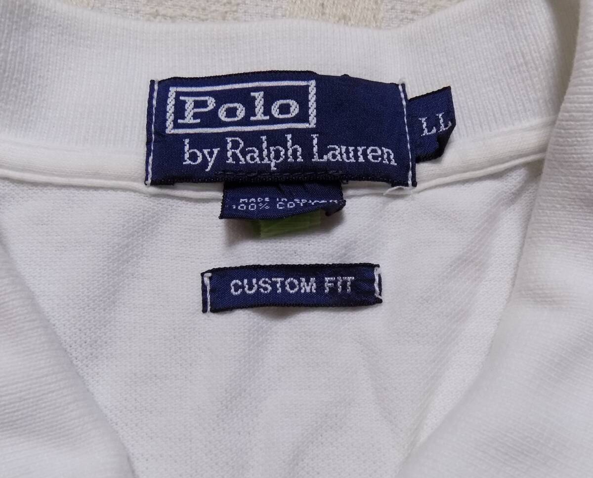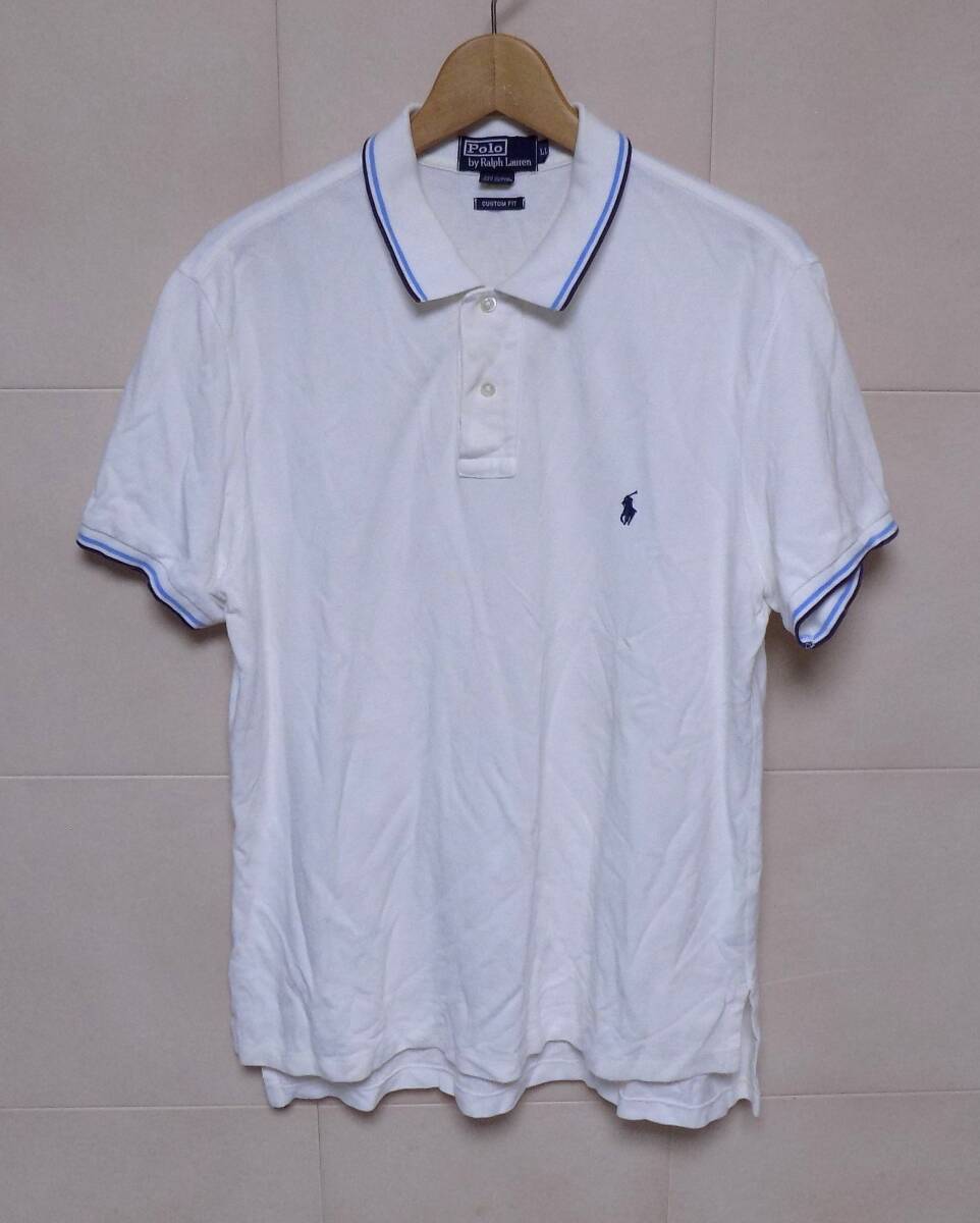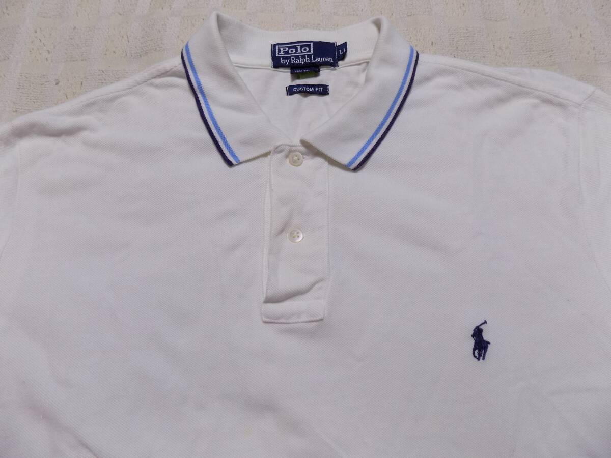 ラルフローレン 衿と袖口に紺&ブルーのライン 白半袖ポロシャツ LL (管B) 收藏
