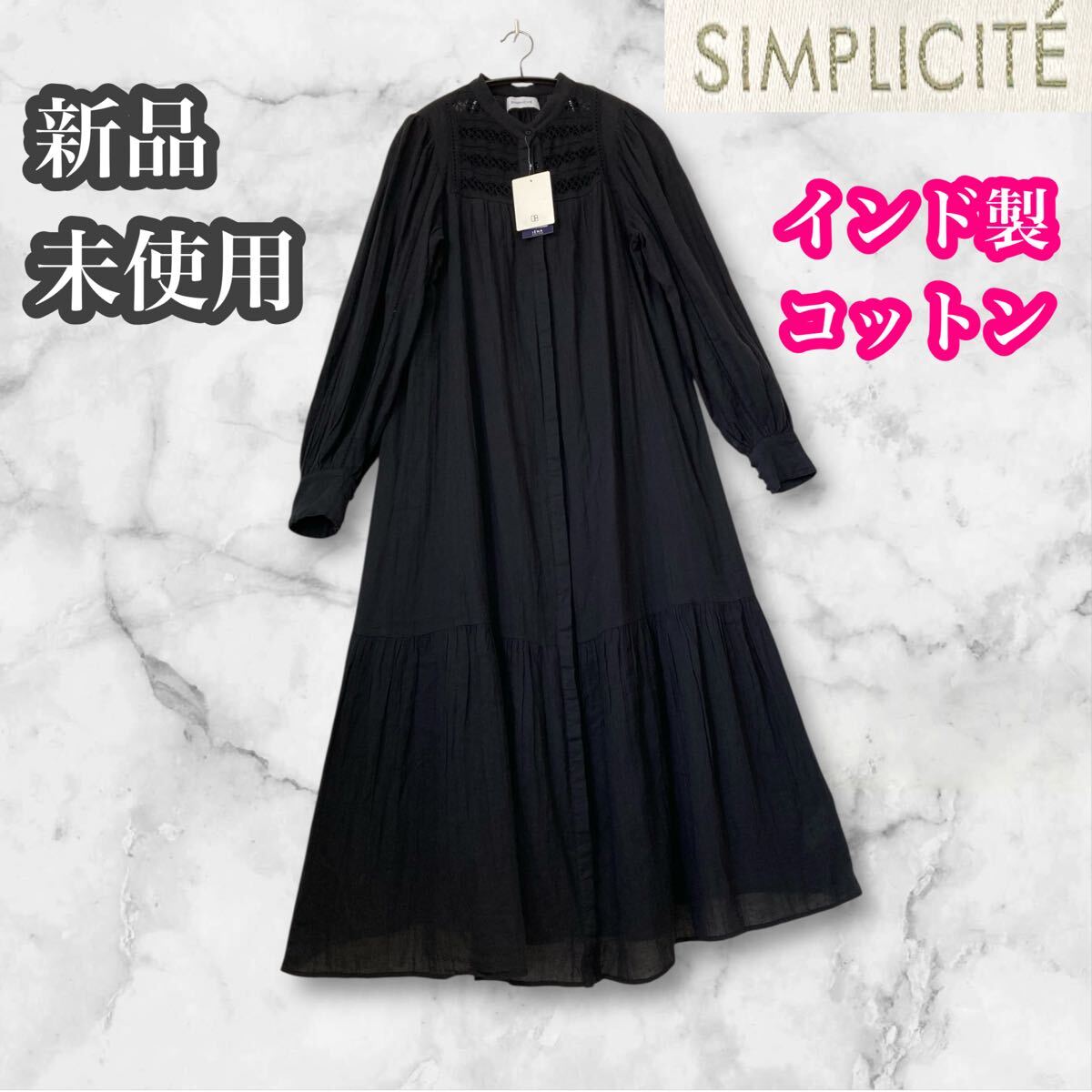 SIMPLICITE 新品未使用 ティアードワンピース 黒 インド綿 レース 收藏
